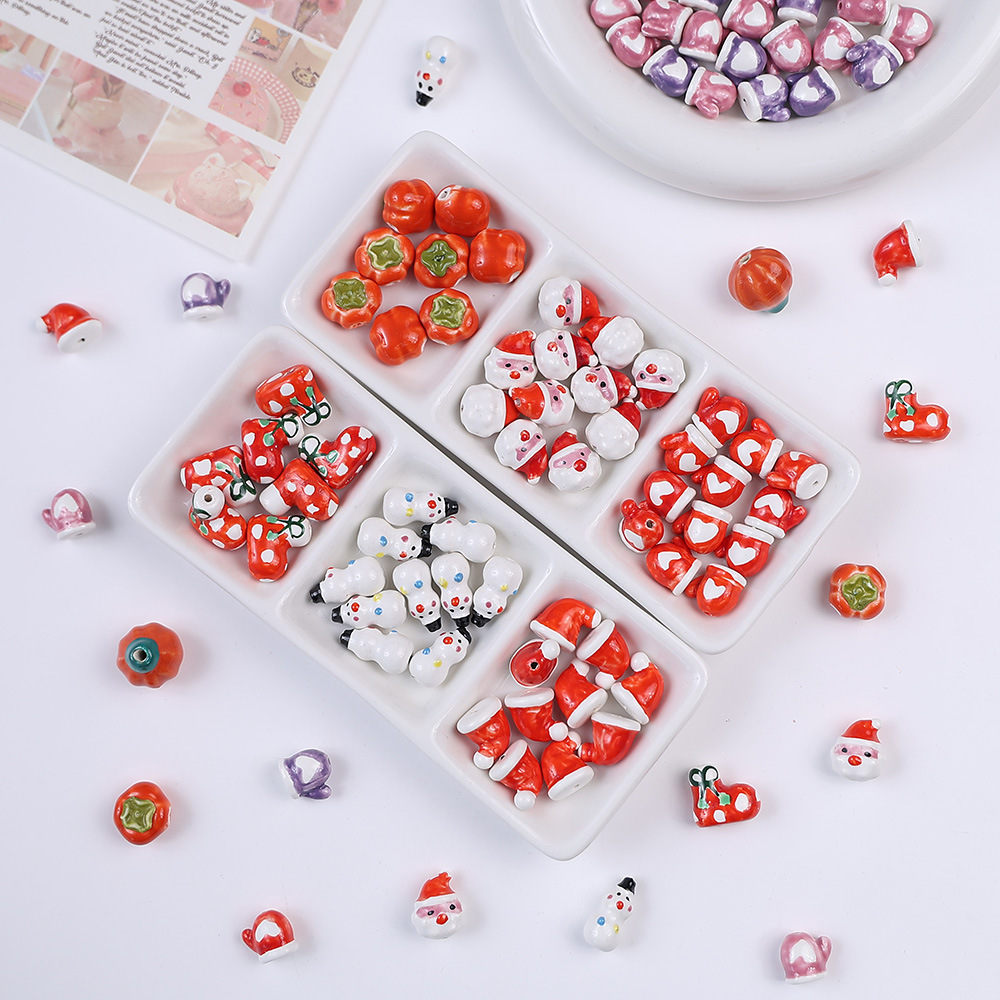 陶瓷手绘圣诞老人雪人直孔串珠 手工diy手链项链手机链配件散珠