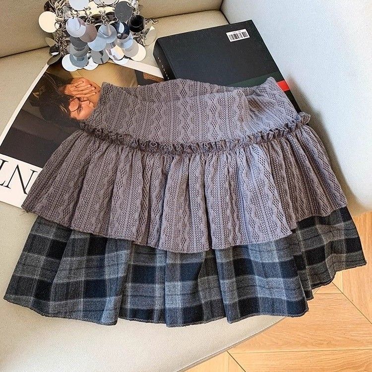 辣妹风碎花格纹蓬蓬蛋糕短裙女2026秋冬季高腰显瘦A字双层半身裙