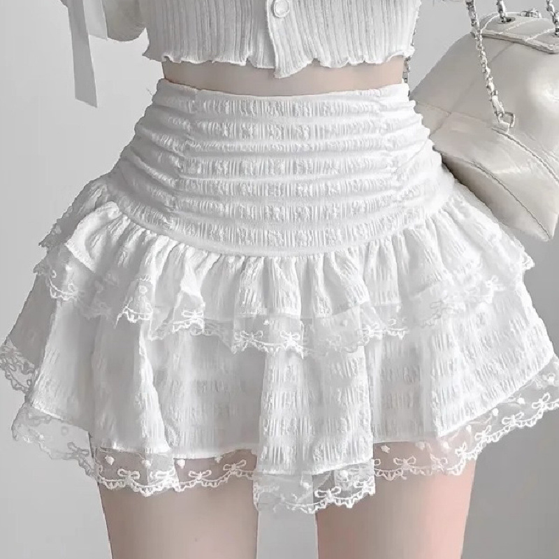 蕾丝法式白色花边半身裙蛋糕芭蕾夏季蓬蓬高腰新款甜美防走光短裙