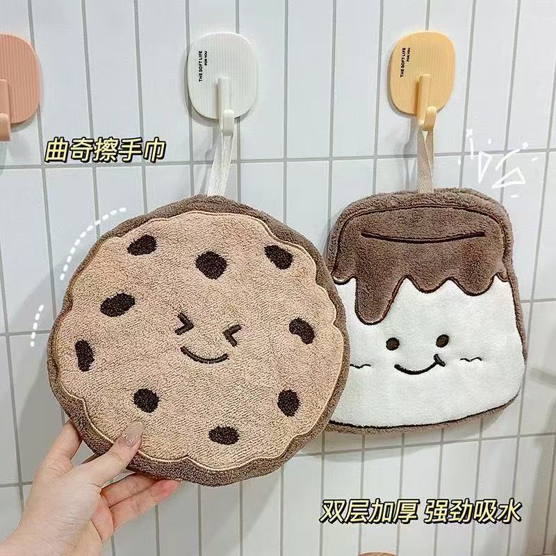 新款卡通曲奇挂式擦手巾吸水速干抹手布卫生间厨房手帕加厚抹手布