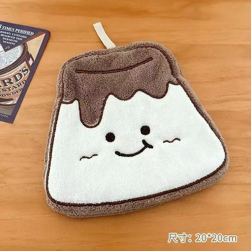 かわいい漫画トーストチーズハンドタオル新しいハンギングハンカチクッキー布厚いコーラルベルベットワイプ