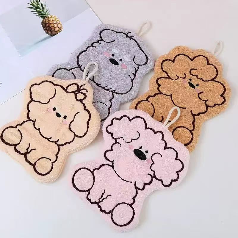 卡通单线小狗挂巾珊瑚绒手帕家用厨房擦手巾卫生间加厚可挂式吸水
