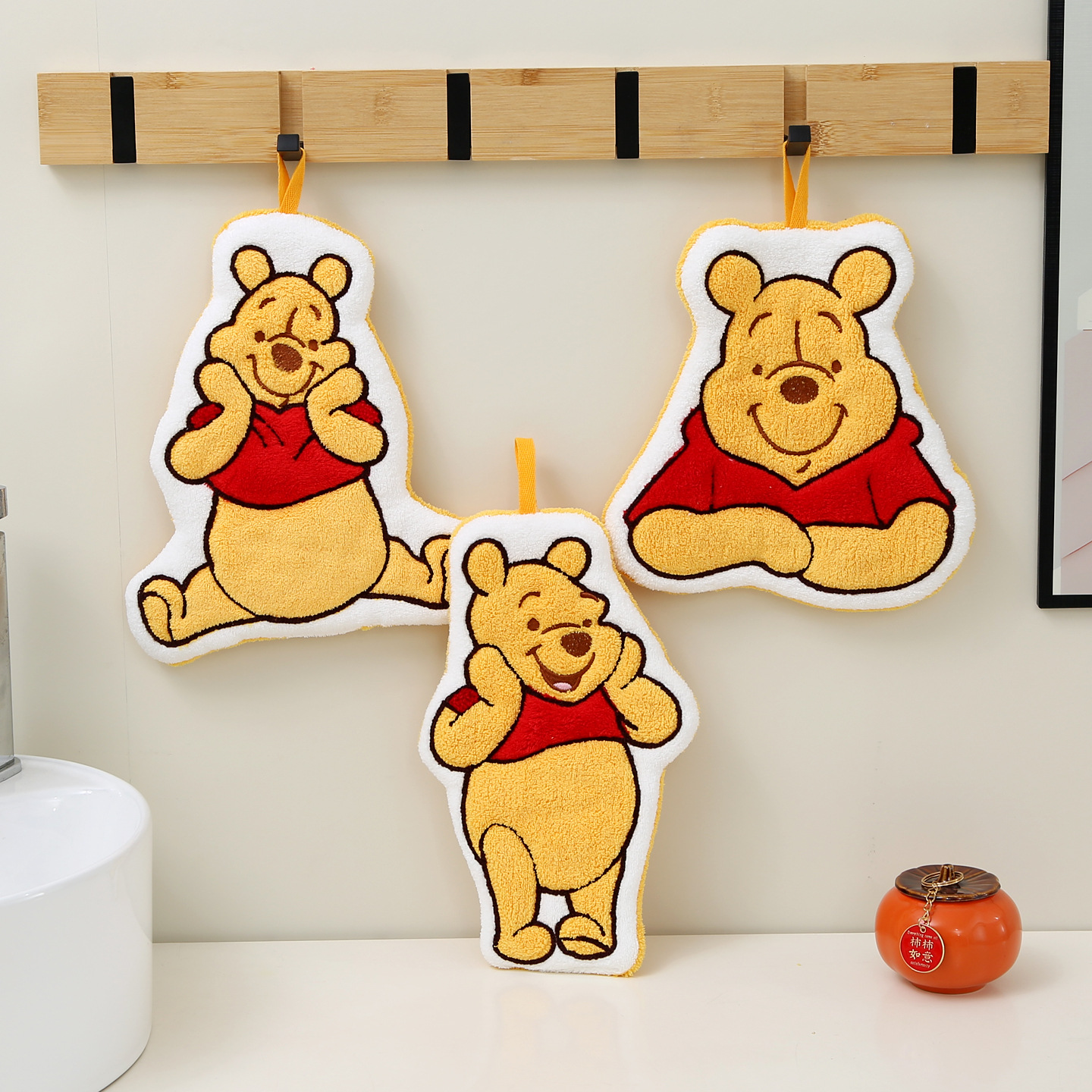 小熊维尼擦手巾环保维尼熊卡通擦手巾餐具不掉毛手帕挂式可爱加厚