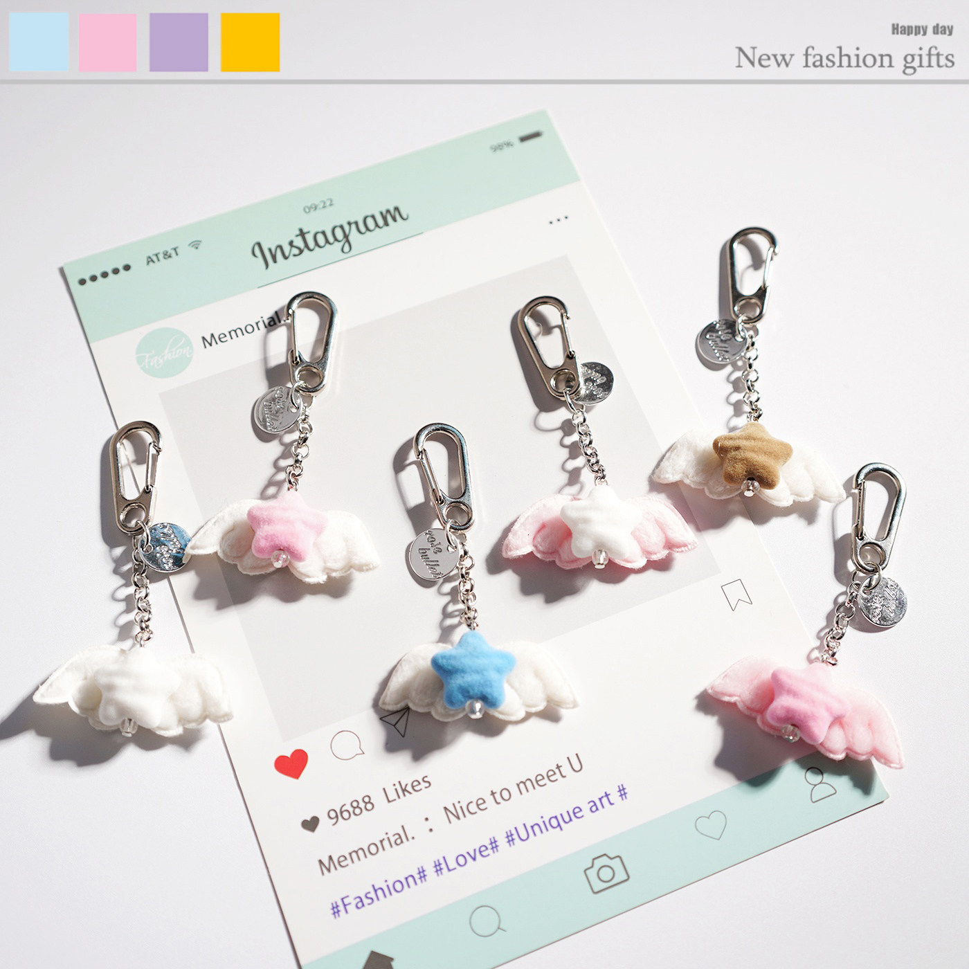 小红书可爱天使翅膀毛绒钥匙扣包包挂件装饰小礼品书包笔饰品