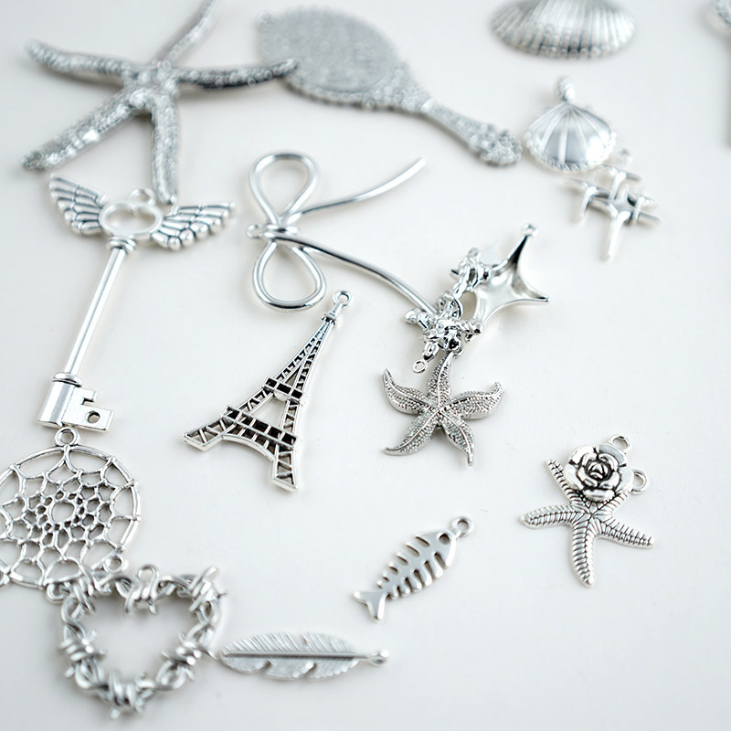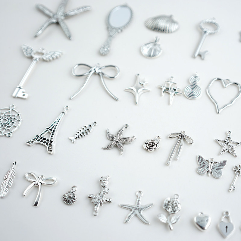 新款配饰手工diy复古银白K小吊坠钥匙扣项链钥匙扣金属制作材料