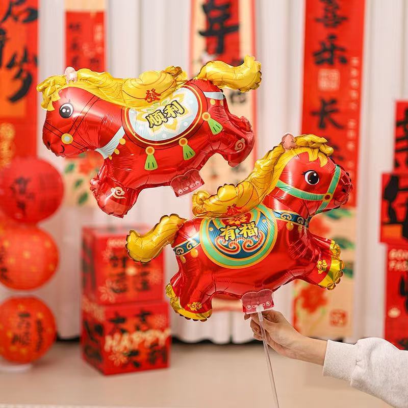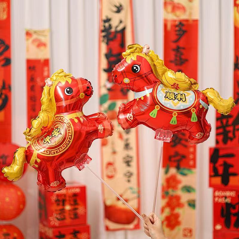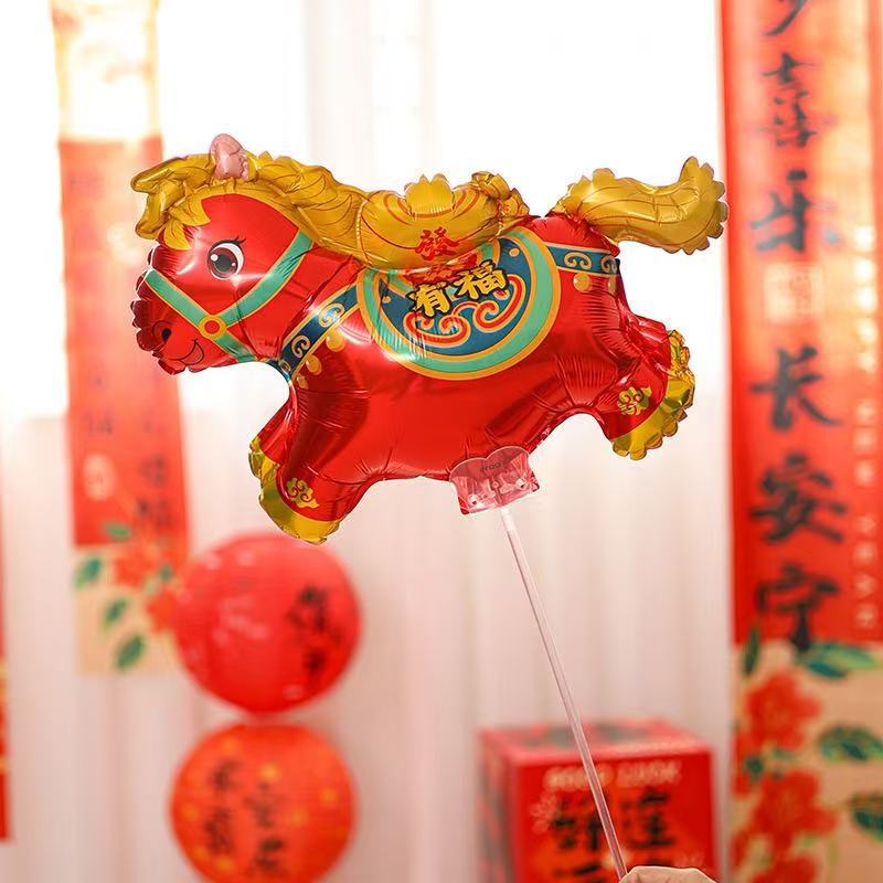 春节福马手持铝膜气球马年儿童商场布置礼品摆摊地推夜市气球批发