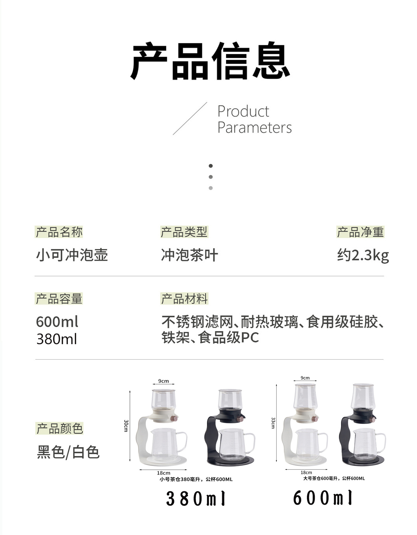 颜色 380ML泡茶壶【黑色】,380ML泡茶壶【白色】,600ML泡茶壶【黑色】,600ML泡茶壶【白色】