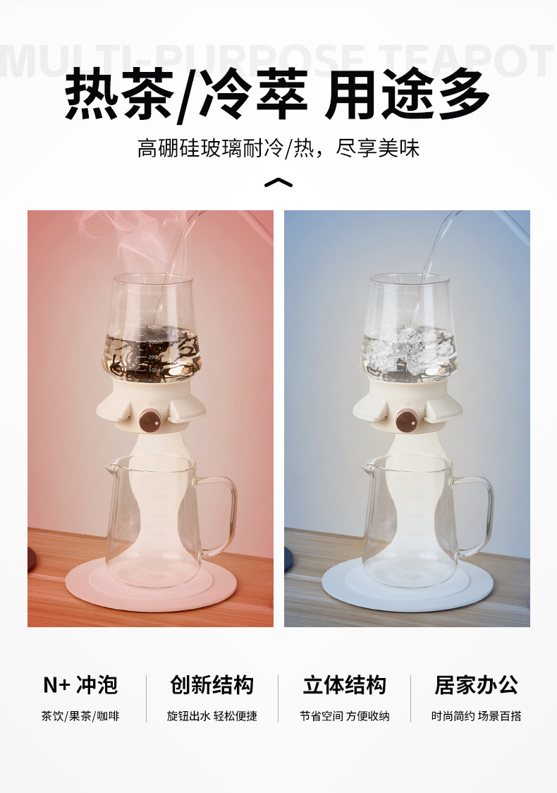 泡茶壶聪明壶新中式泡茶器冷萃玻璃茶具新中式茶具冰滴壶懒人泡茶