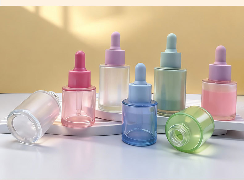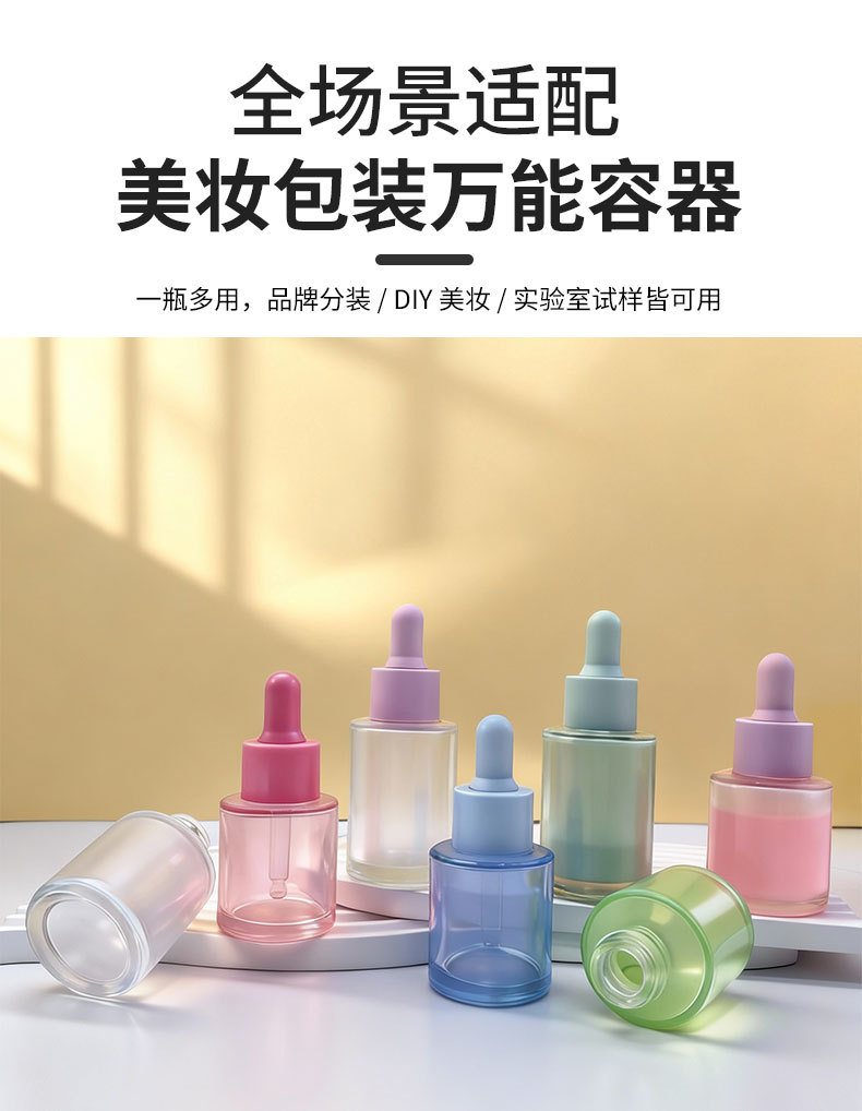 20ml彩色马卡龙精油瓶蒙砂避光玻璃滴管渐变蓝色玻璃卡口香水分装