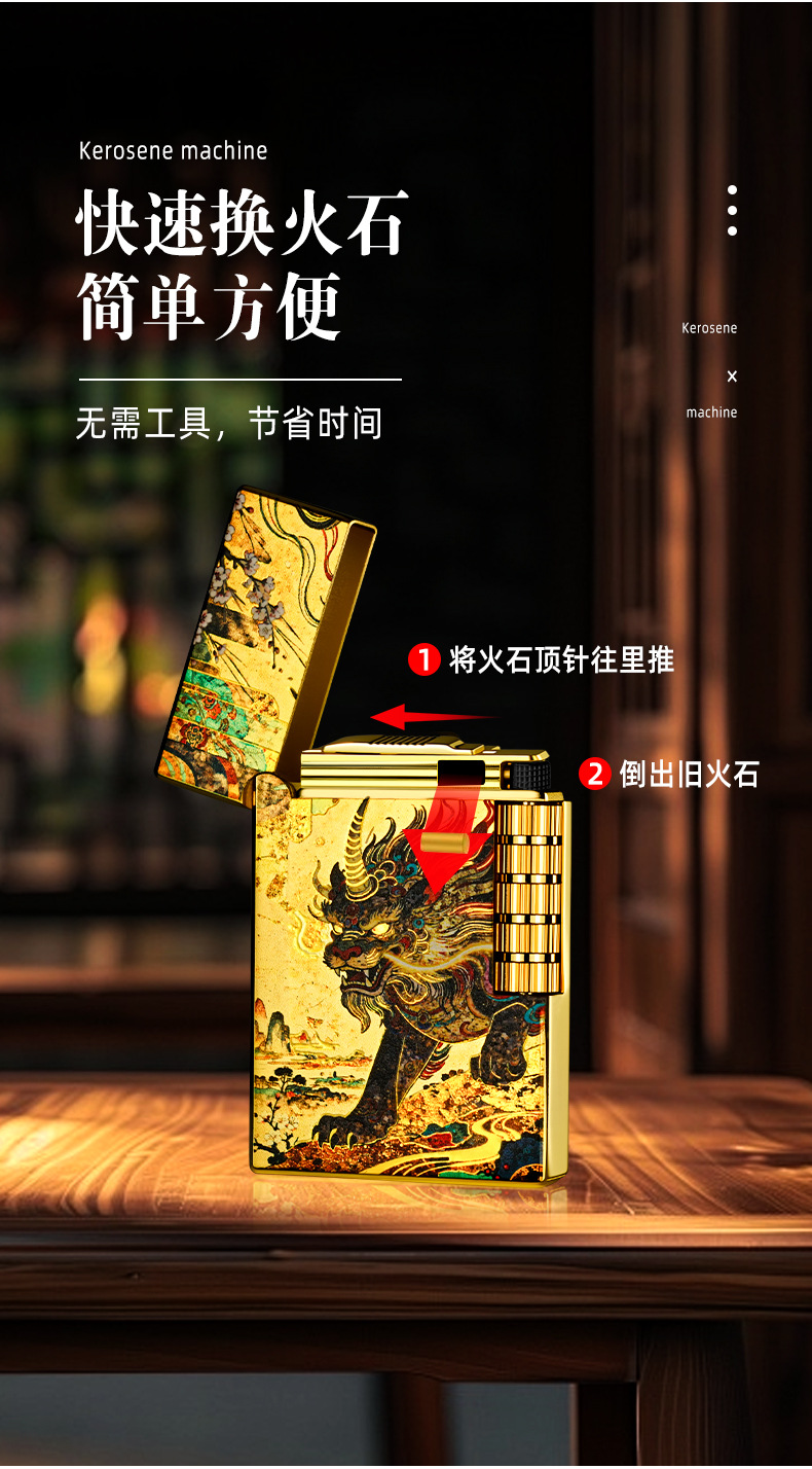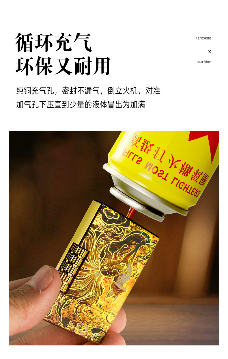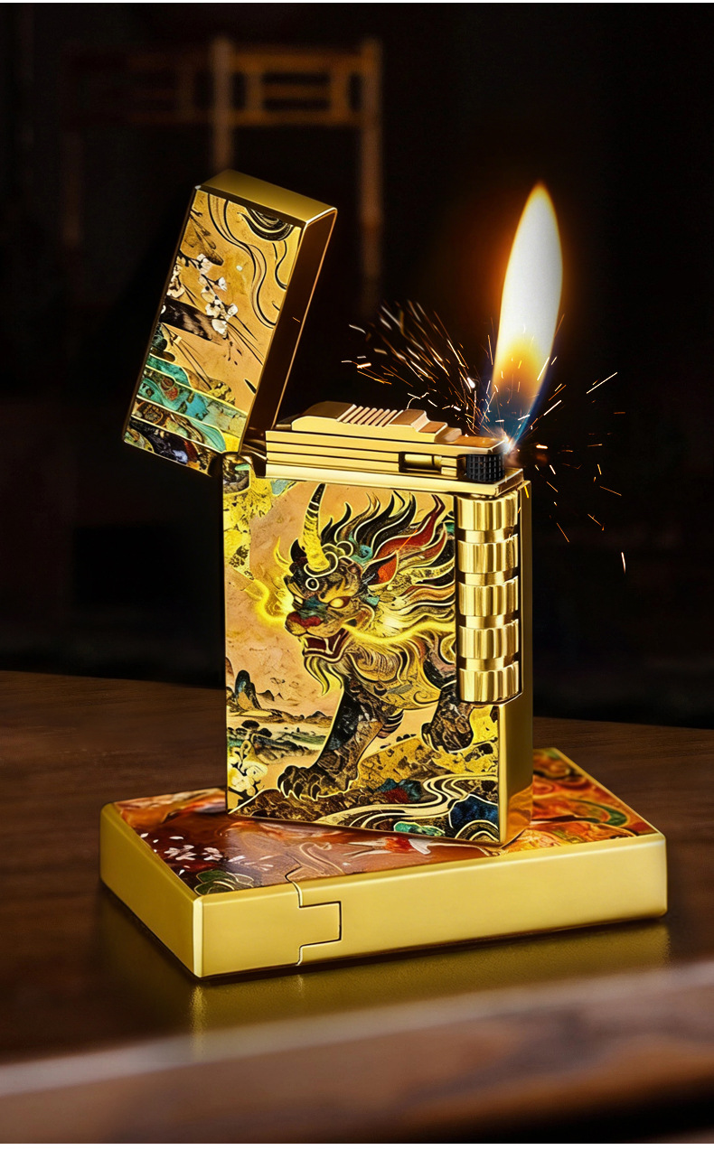 DK923鎏金珐琅彩印朗声斜火明火砂轮打火机充气点烟斗打火机批发
