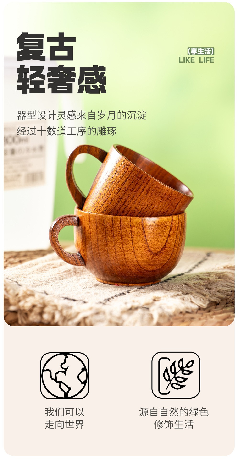 酸枣木复古日式马克杯大号大肚杯碳化水杯家用饮水杯子木质