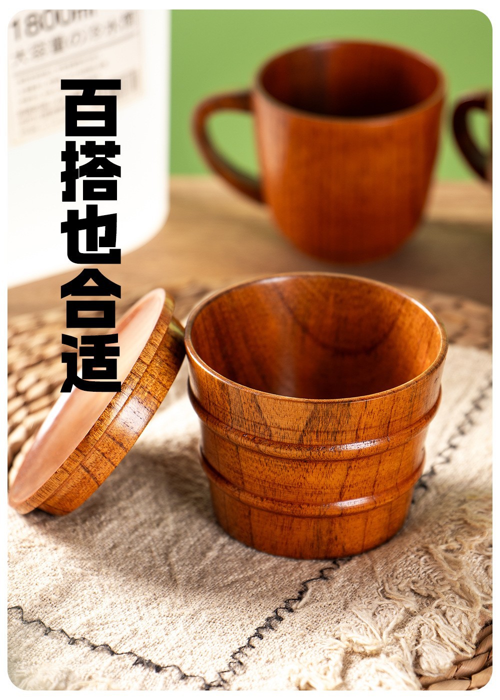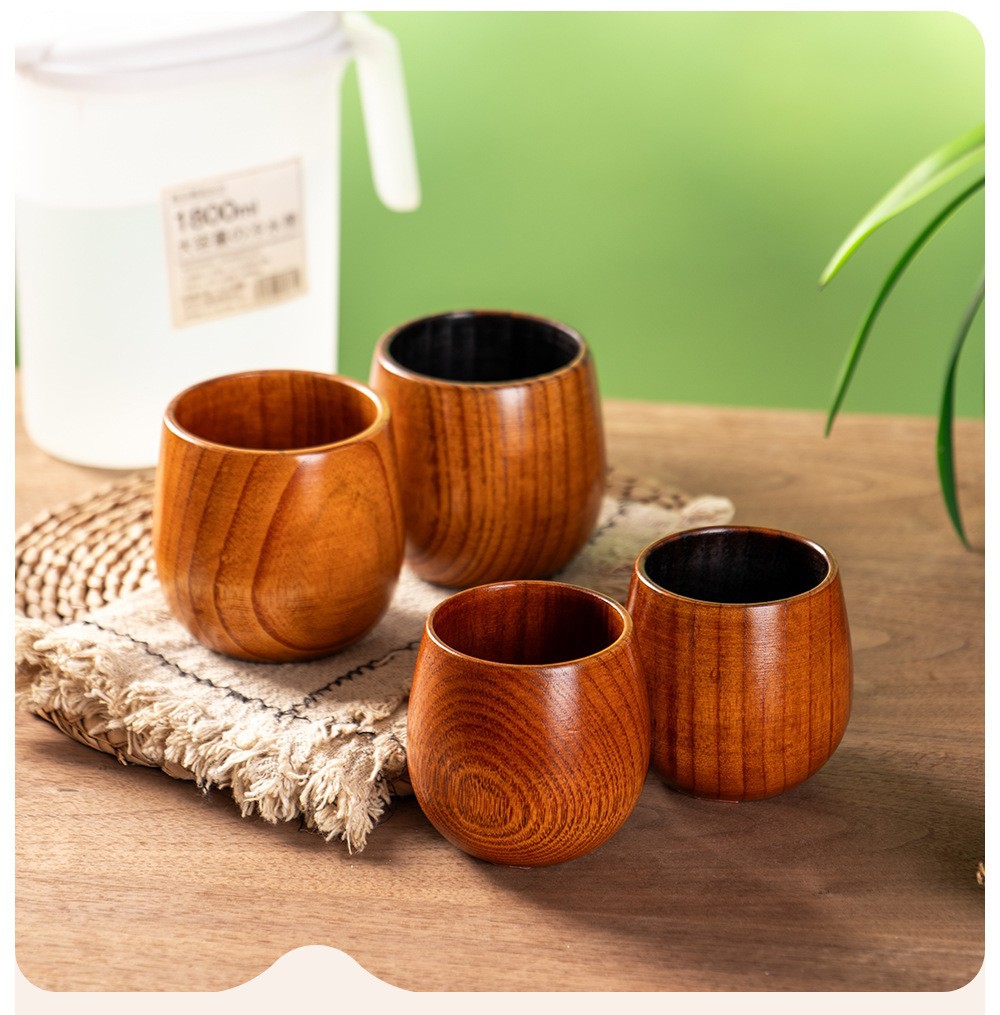 和風ナツメ木製ビッグベリーカップクリエイティブレストランティーカップ木製カップクリエイティブ木製カップロゴで注文卸売