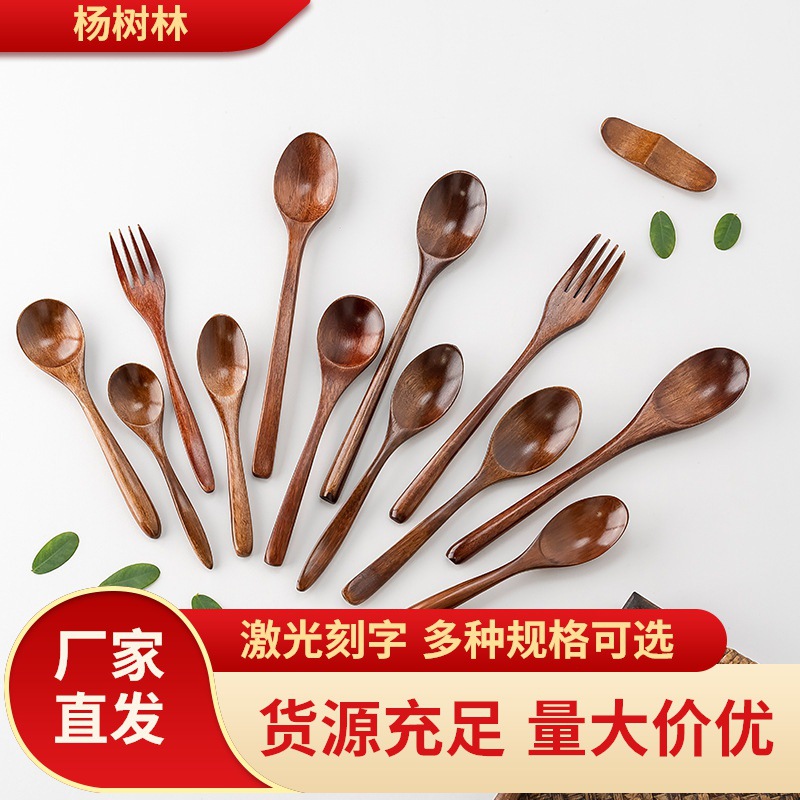 楠木多スタイル携帯児童小木スプーンセット木製家庭用スプーンフォークシンプルなスープスプーンはロゴを彫ることができる