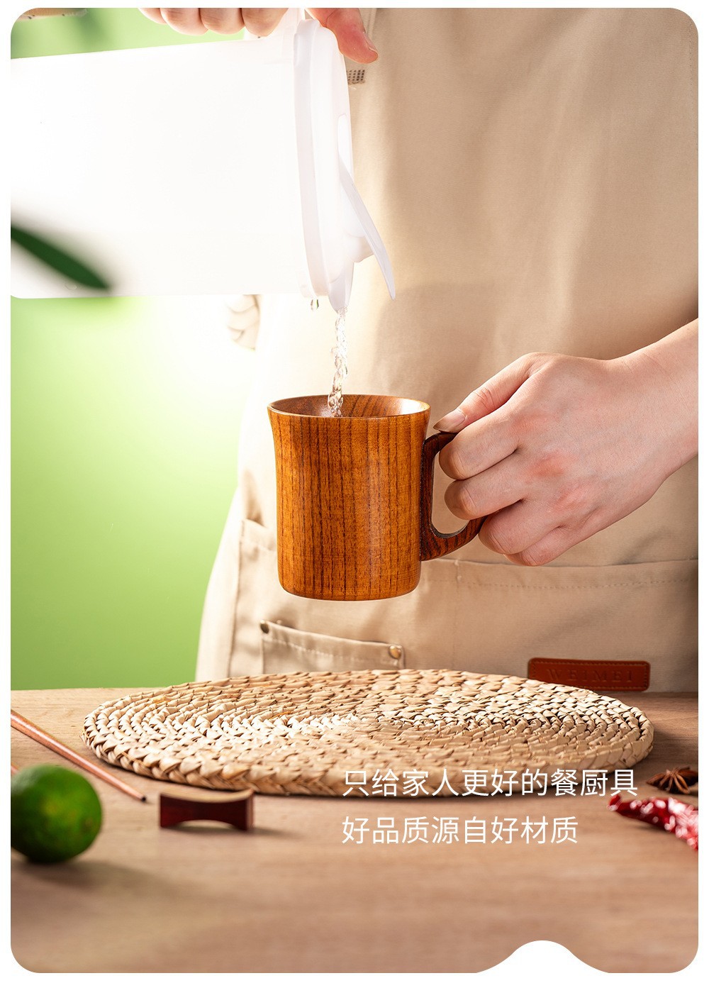 北欧木质防烫茶杯大肚杯啤酒杯咖啡杯北欧玻璃杯木质杯子水杯批发