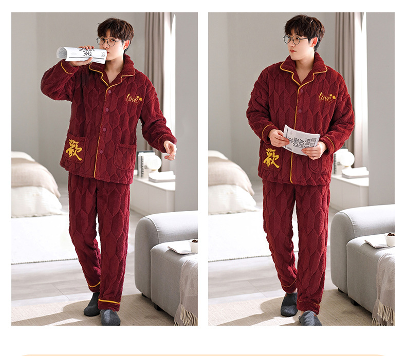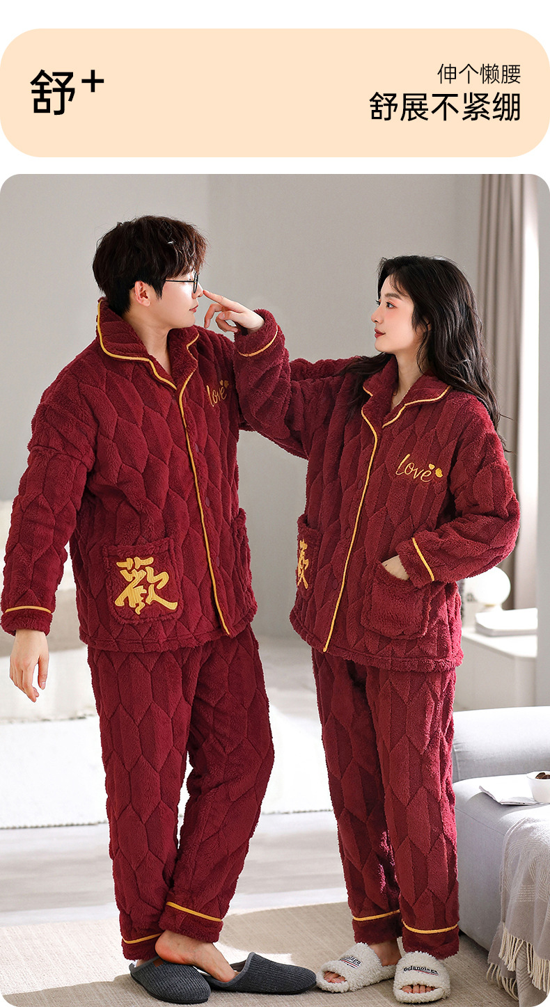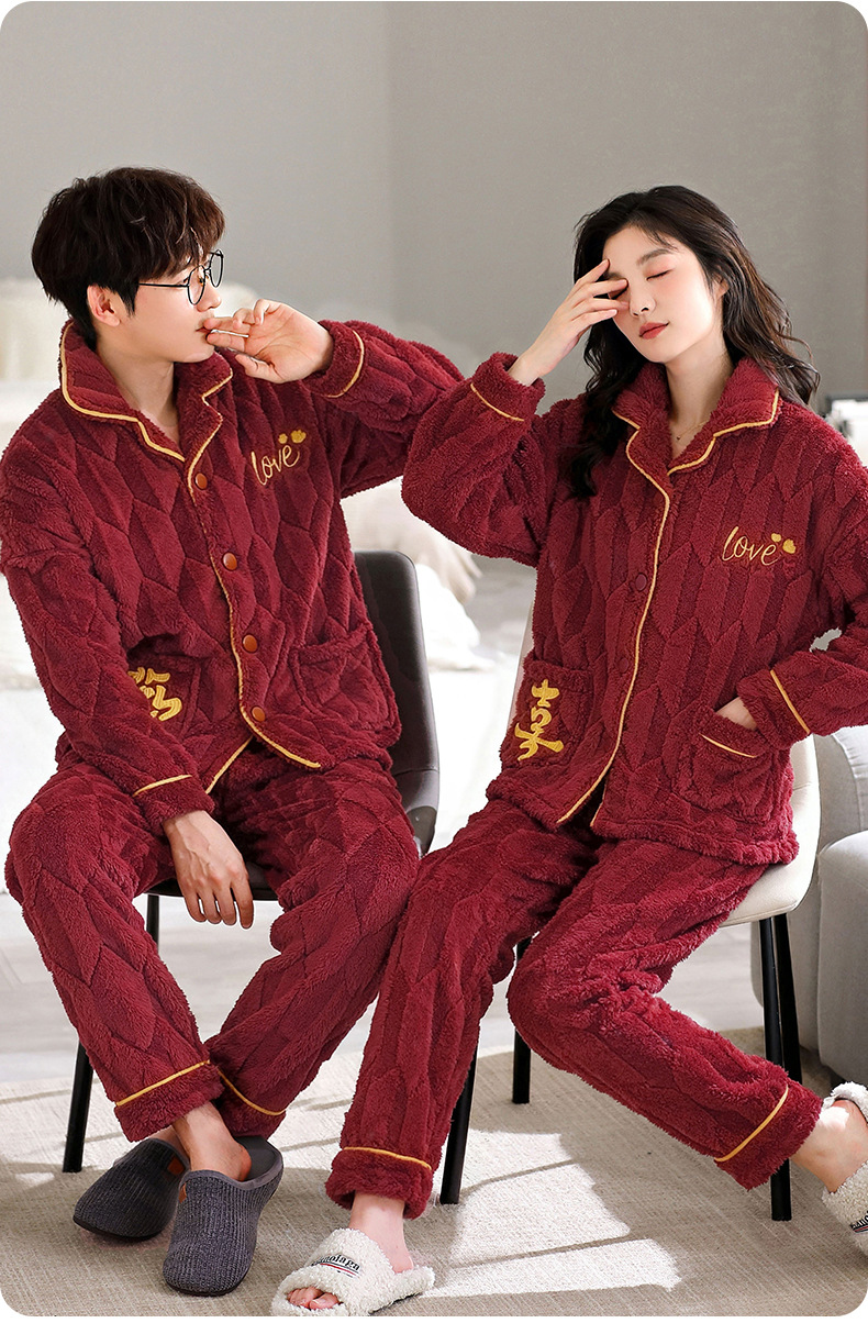 カップルのパジャマサンゴのベルベットは冬にベルベットの赤い本命年結婚保温家庭服フランネルのセットを厚くした