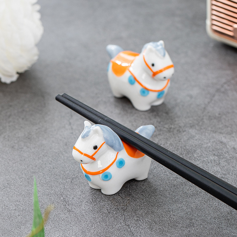 文创陶瓷筷架小马马年日式动物花宠茶宠可爱陶瓷餐桌工位摆件礼品