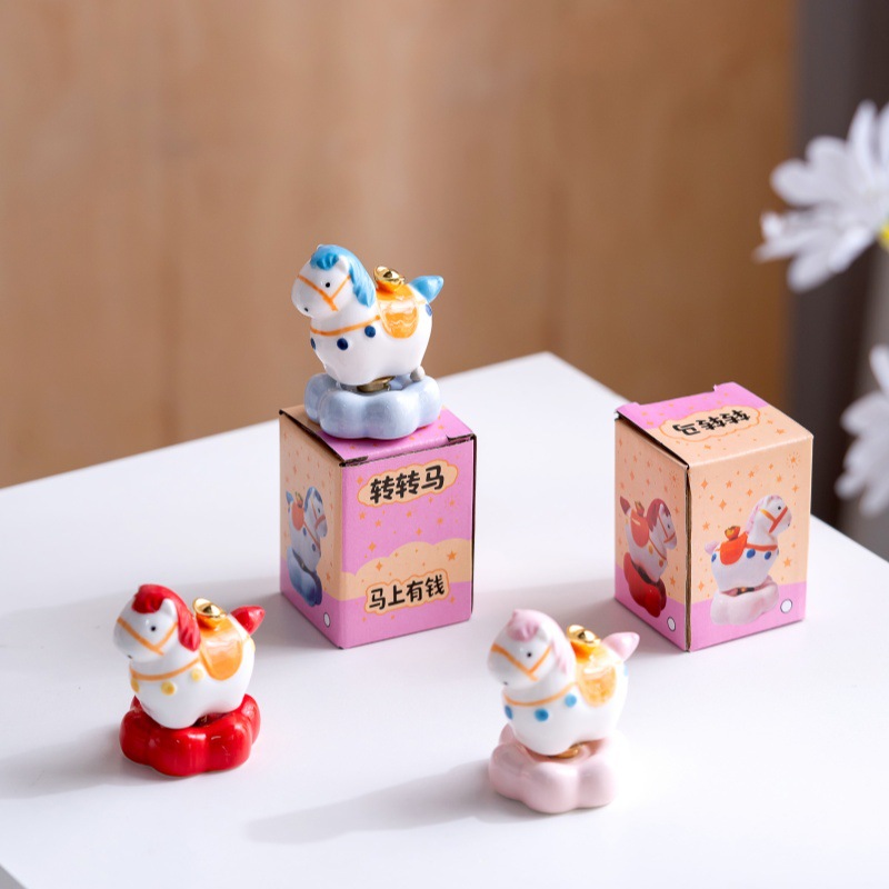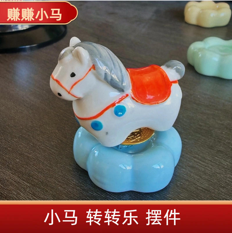 陶瓷小马转转网红马上有钱转转摆件彩绘摇摇马地摊摆摊旅游纪念品