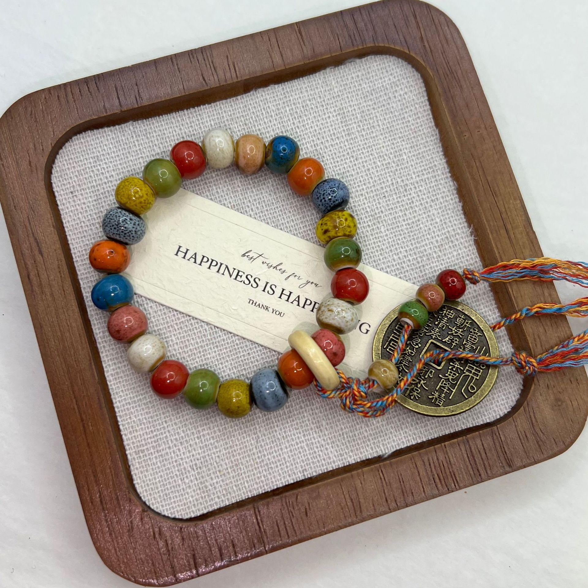 民族風花釉陶磁器幾何学円珠愛ブレスレット禅意カラー男女手串小衆精致手環女