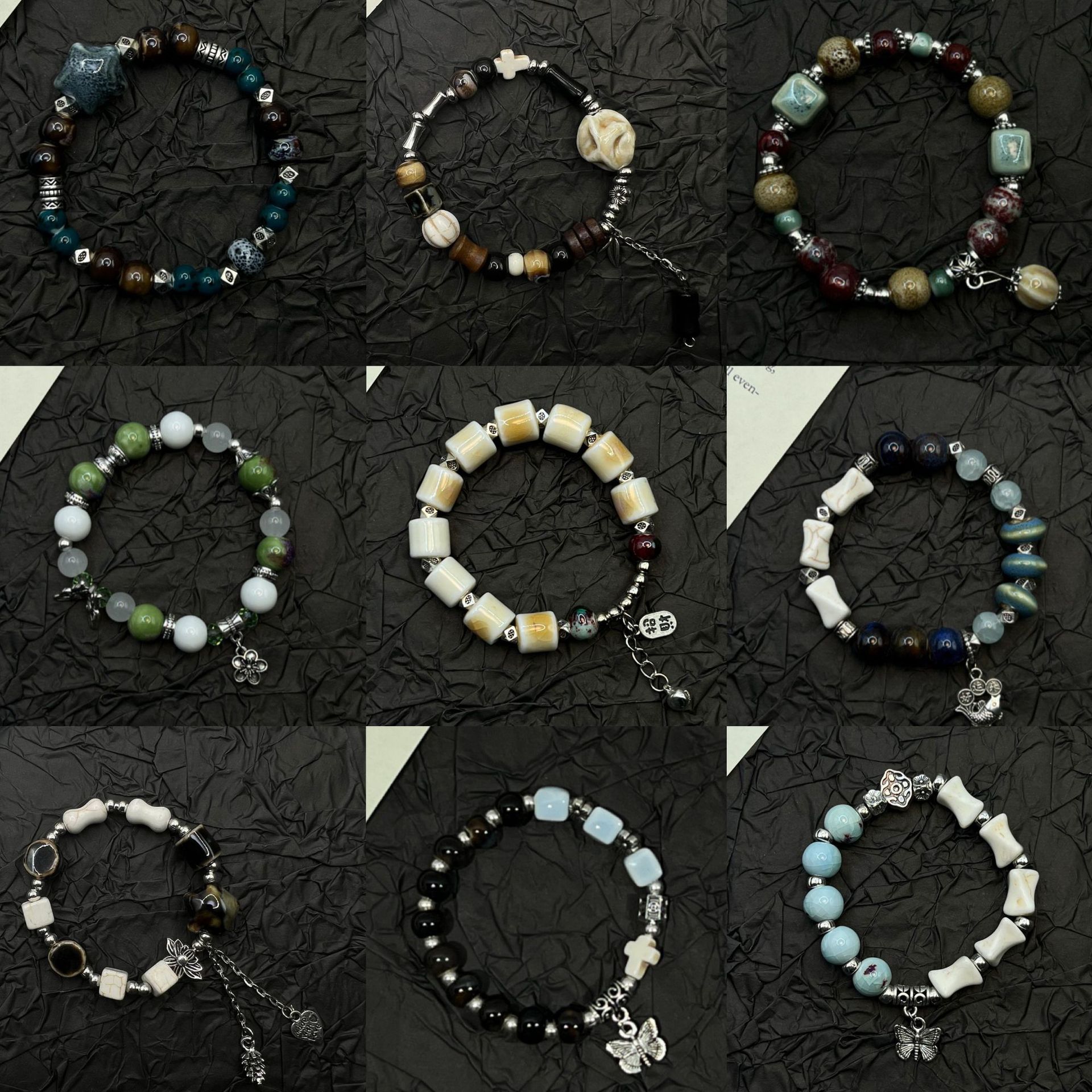 中国風のレトロな中国セラミックビーズブレスレット景徳鎮セラミックブレスレット学生親友古代スタイルのアクセサリー小物
