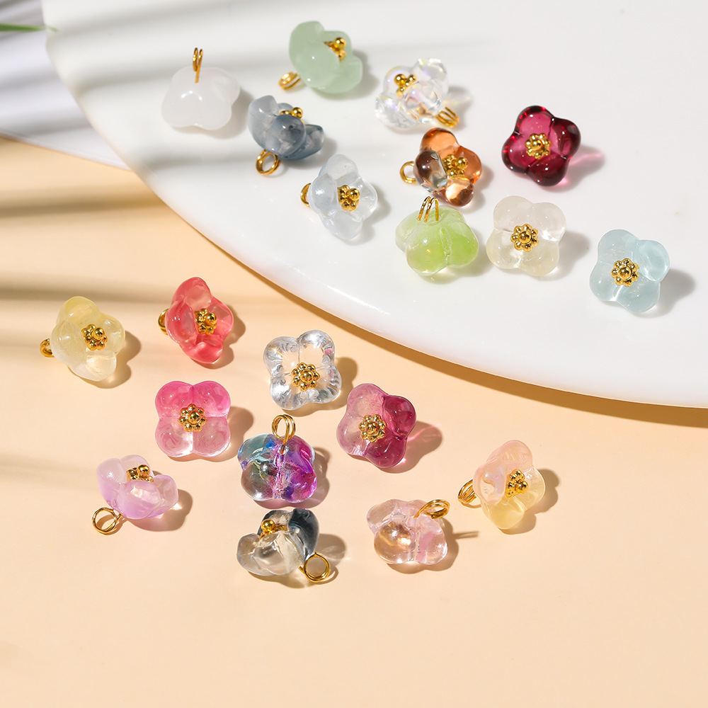 透色琉璃四瓣花纽扣吊坠挂件 手工diy手链项链饰品配件材料批发