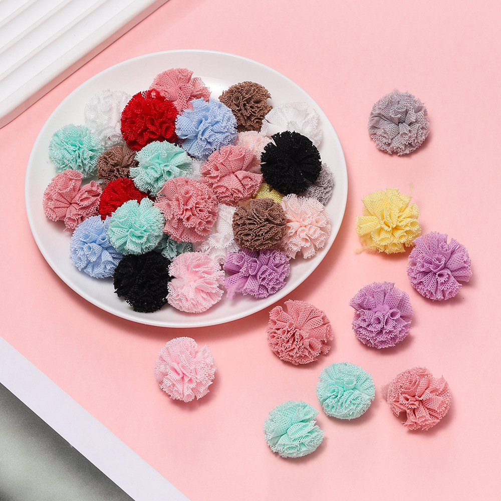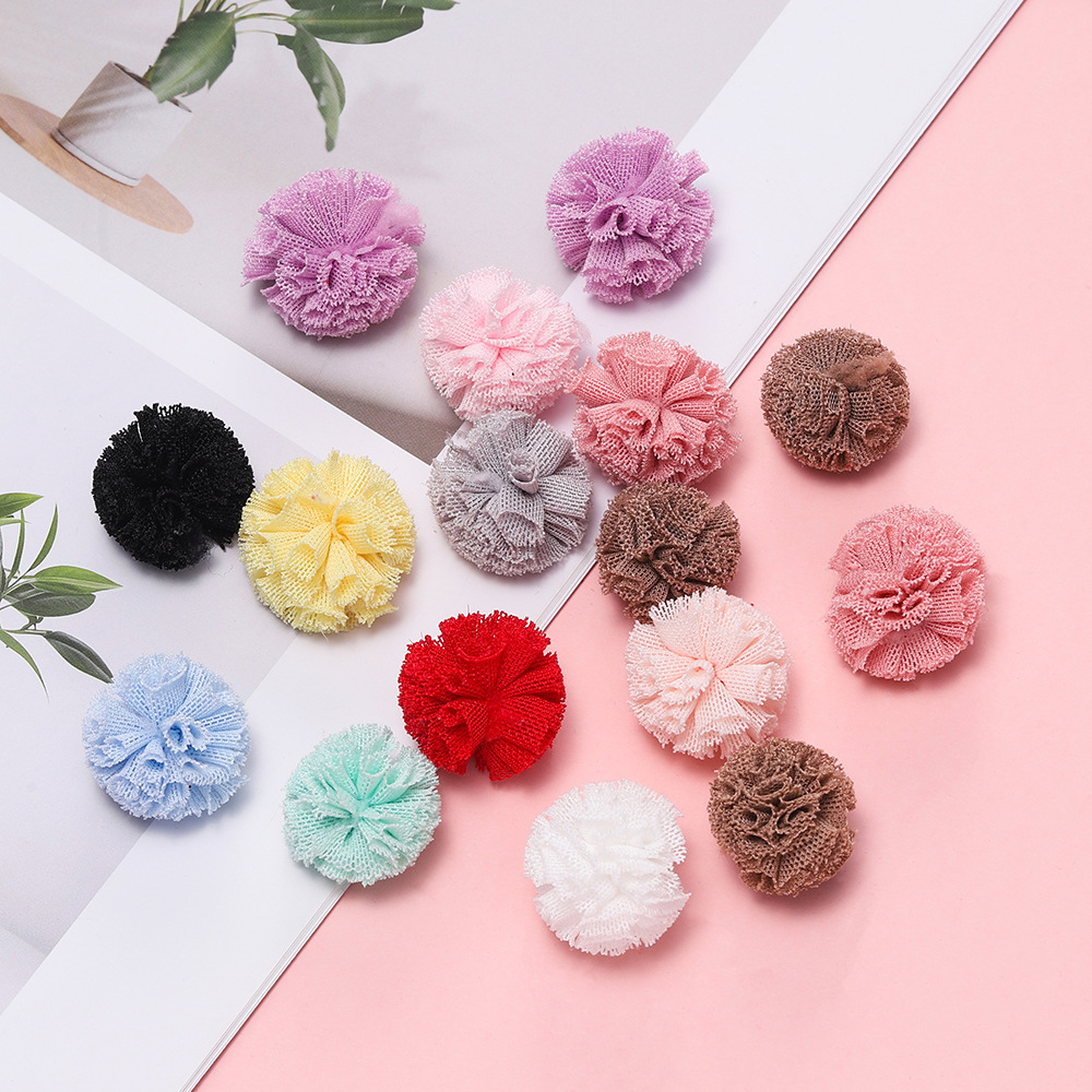 現物1.5-4センチ韓国版弾力ネット花球レースネット毛玉diy児童髪飾りストラップ材料