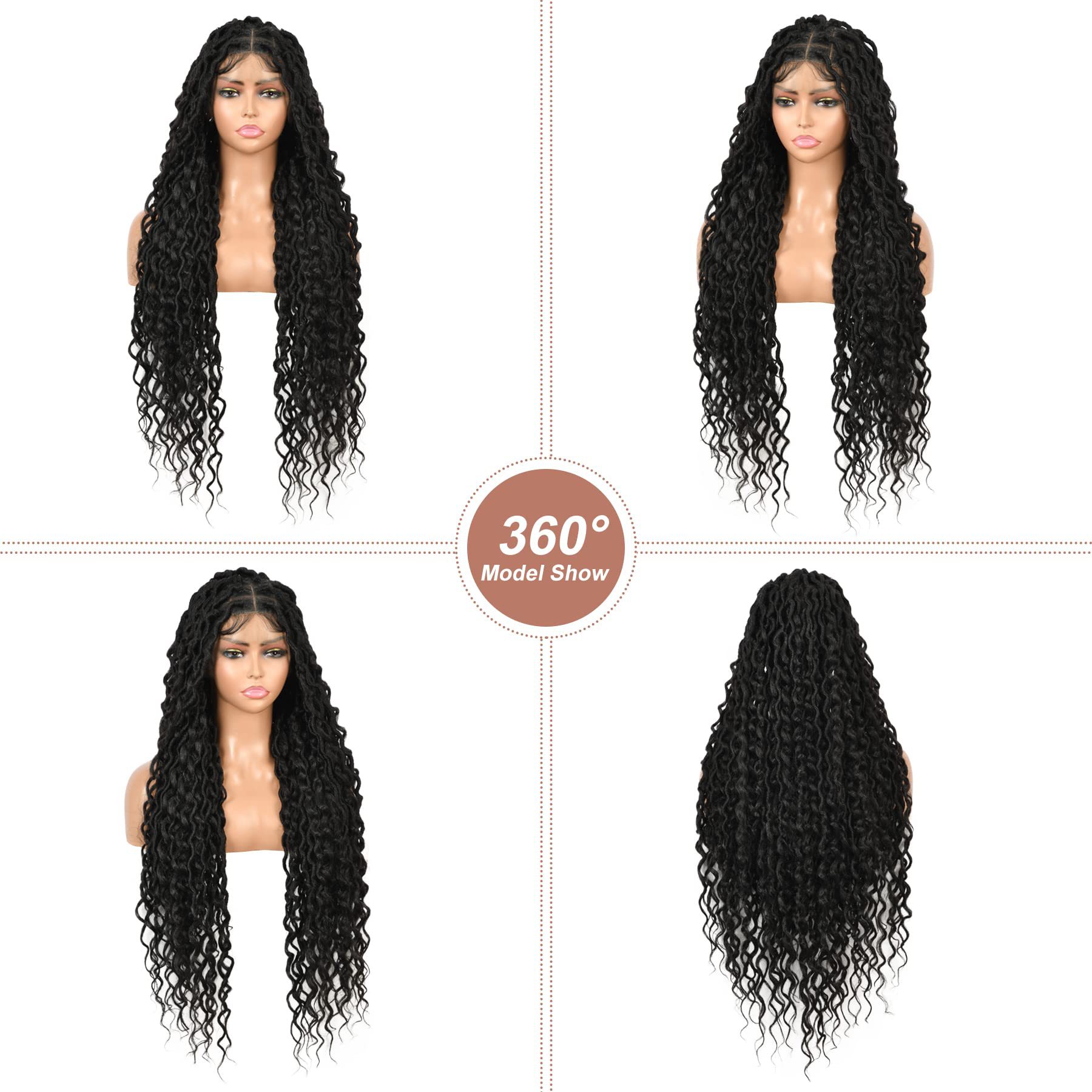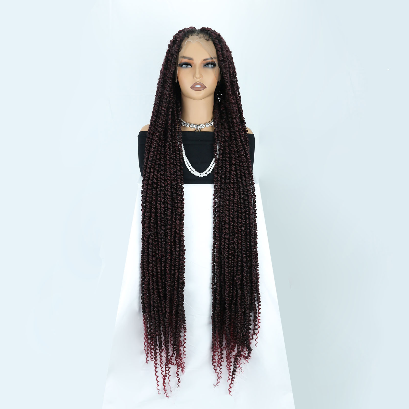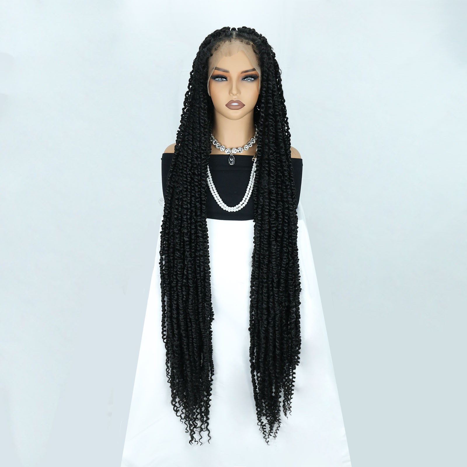 36 'フルレース編み込みウィッグ女性のための結び目のない編み込みウィッグベビーヘアボックス状編み込みウィッグ
