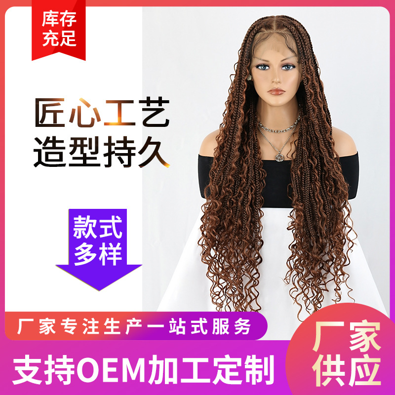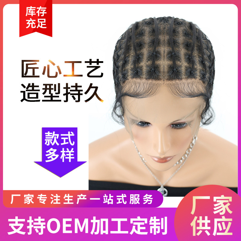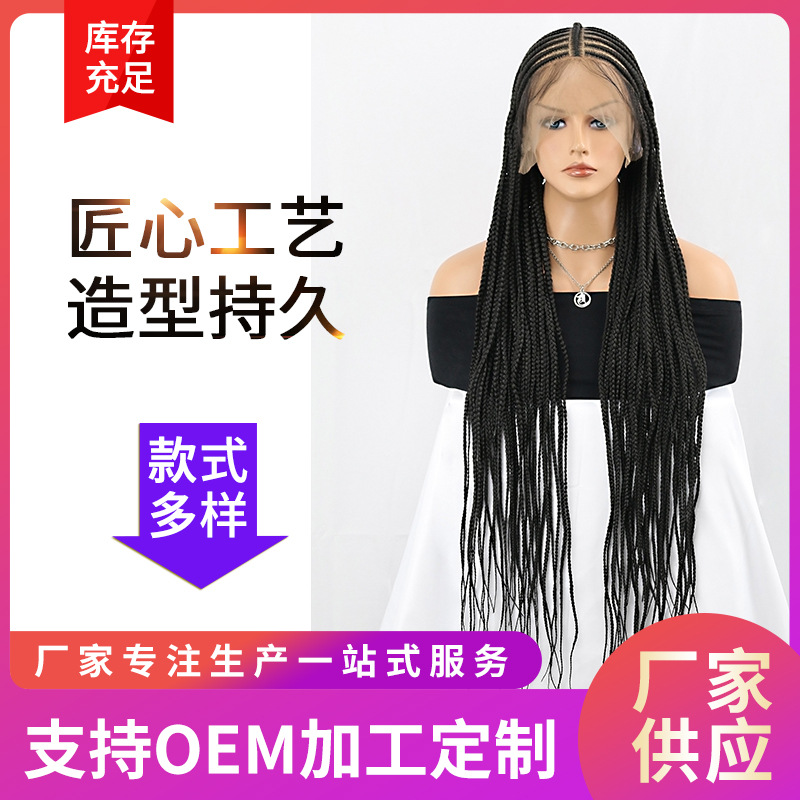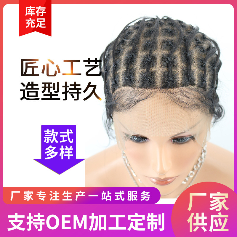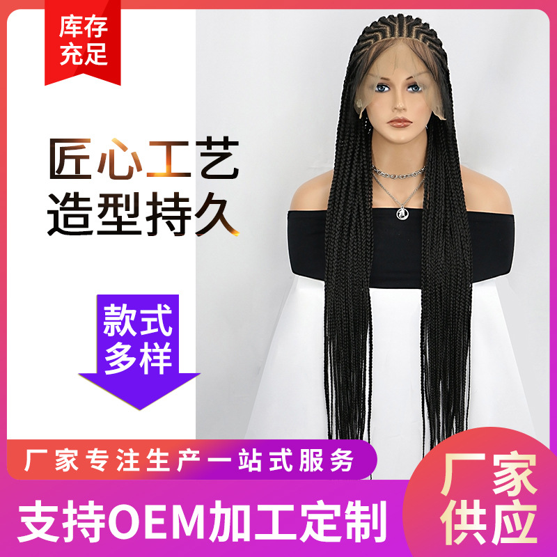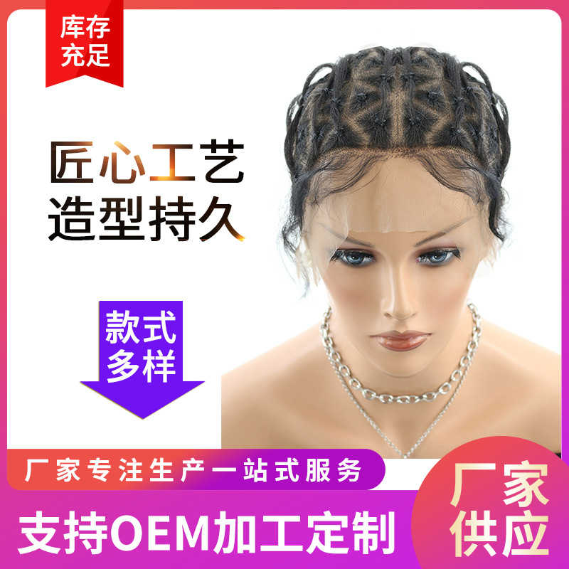 假发BoxBraidLaceFrontWig手织化纤三股辫脏辫蕾丝头套发饰全头假