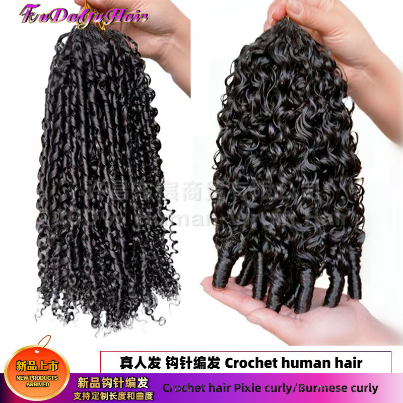 钩针编发Burmese curly/Pixie curly human hair真发假发缅甸卷