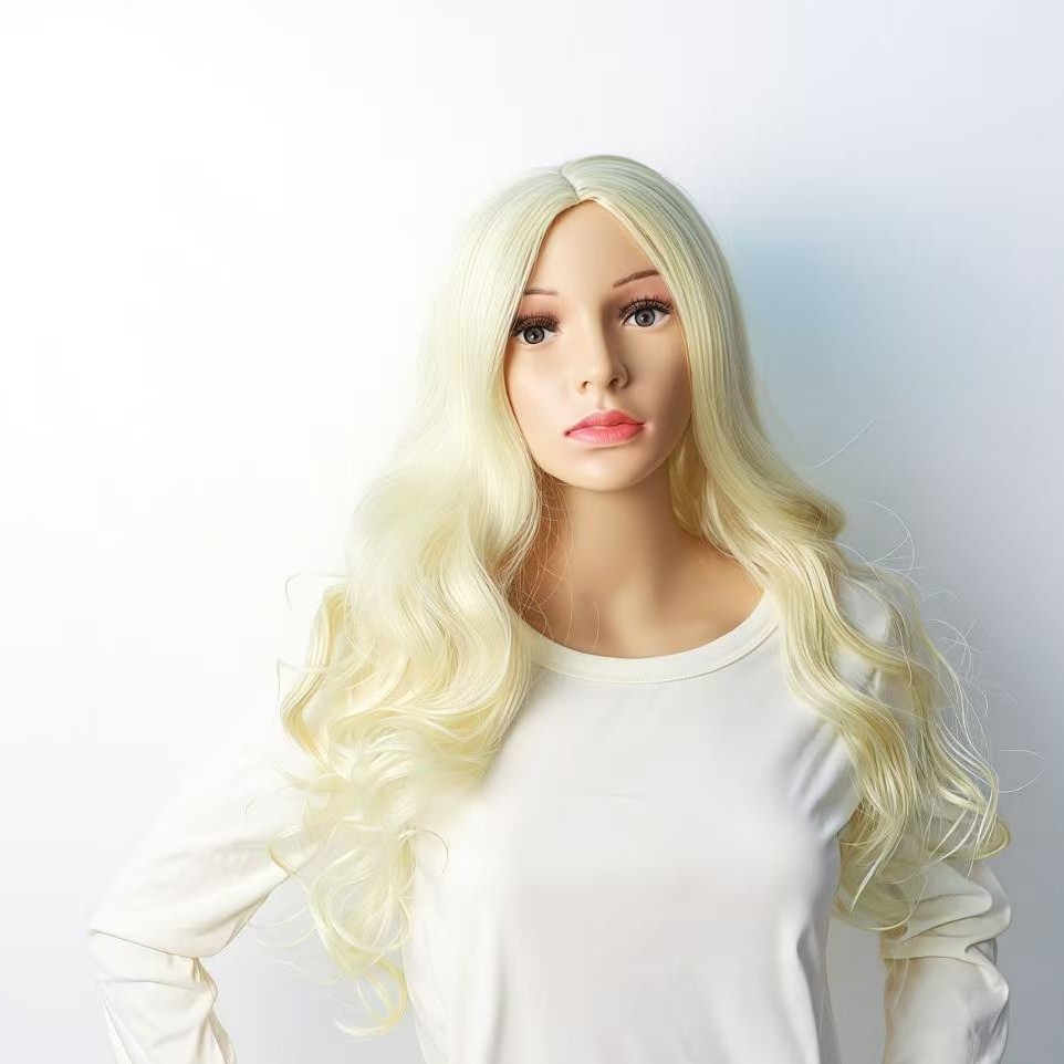跨境欧美爆款女士中分高温丝头套假发长直微卷渐变色外贸假发头套