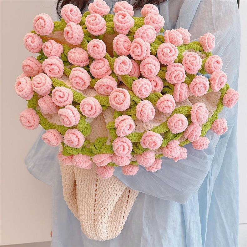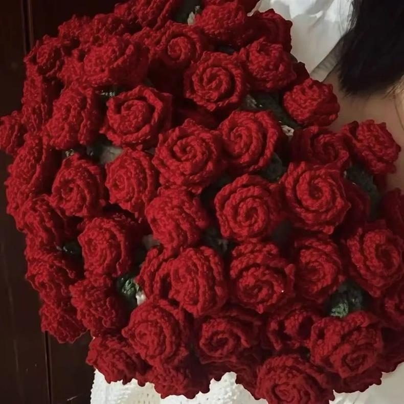 手工编织玫瑰花束毯子材料包毛线团钩织花朵毛线团钩织送朋友