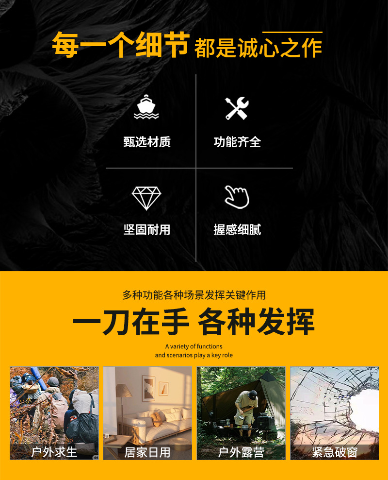 フィールドキャンプサバイバルナイフ、アウトドア折りたたみナイフ、多機能ポータブル釣り必需品ナイフ、家庭用ナイフ