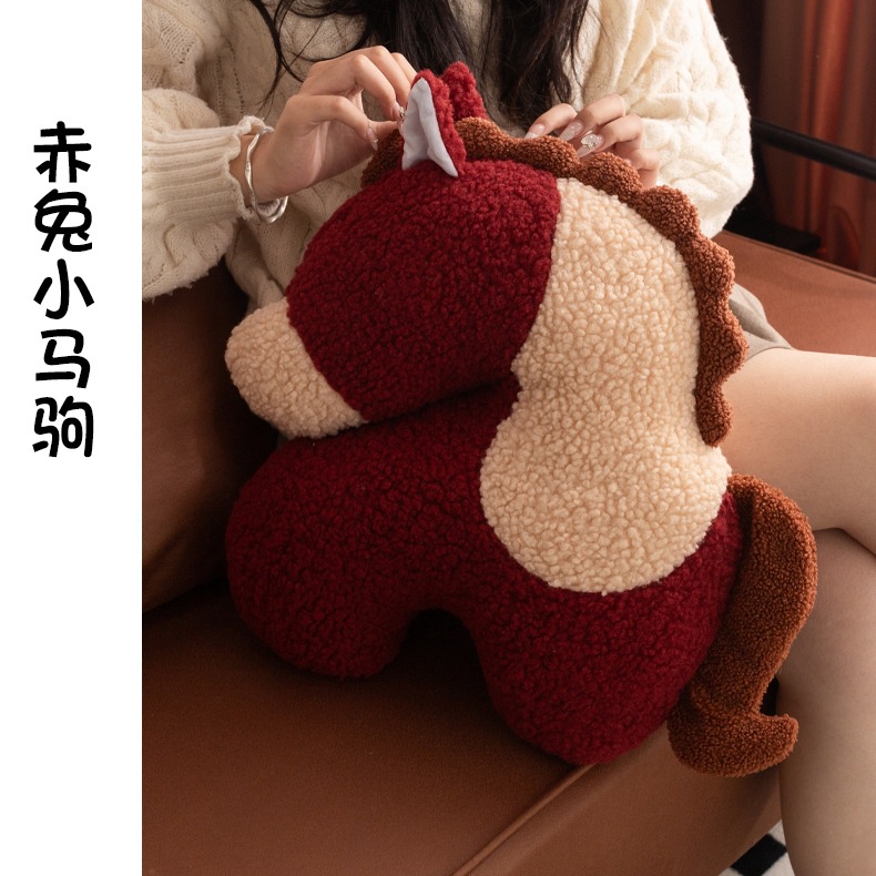 创意马年抱枕异形毛绒玩偶沙发客厅春节装饰摆件新年车载靠枕礼物