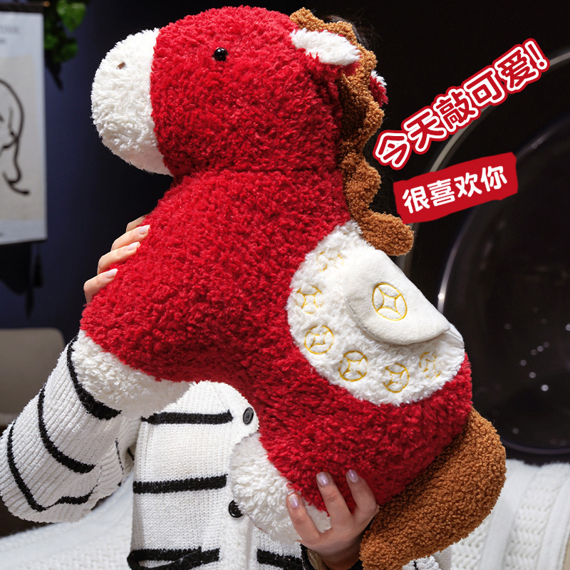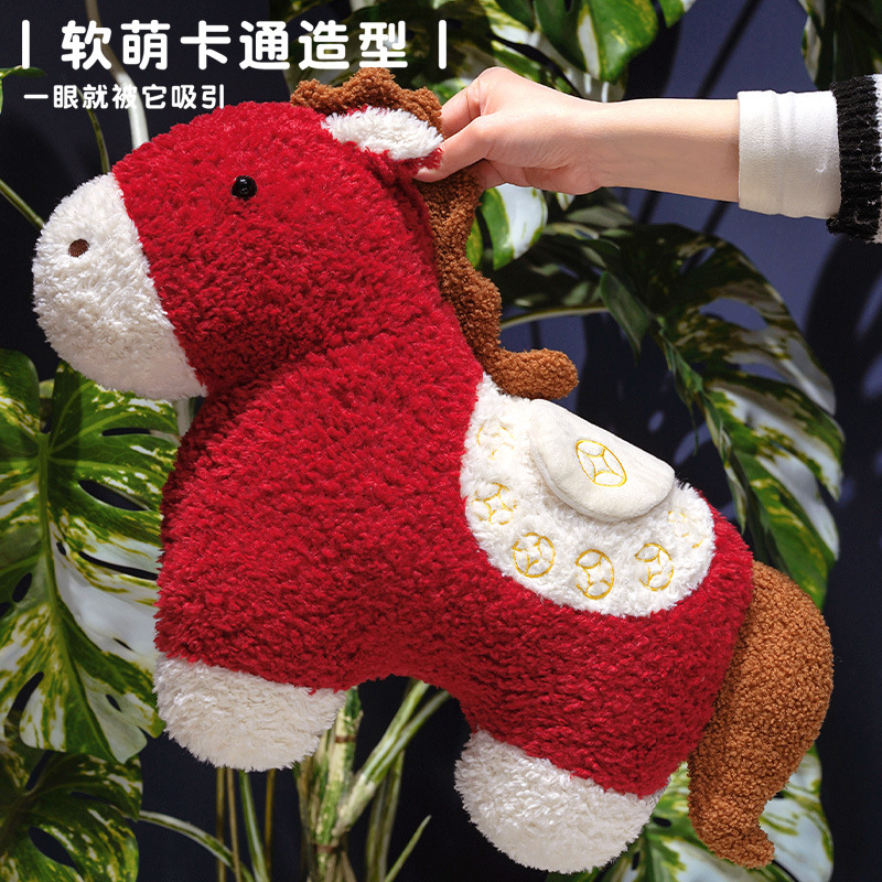 创意马年吉祥物抱枕毛绒玩偶沙发客厅春节装饰品公仔车载红马靠枕