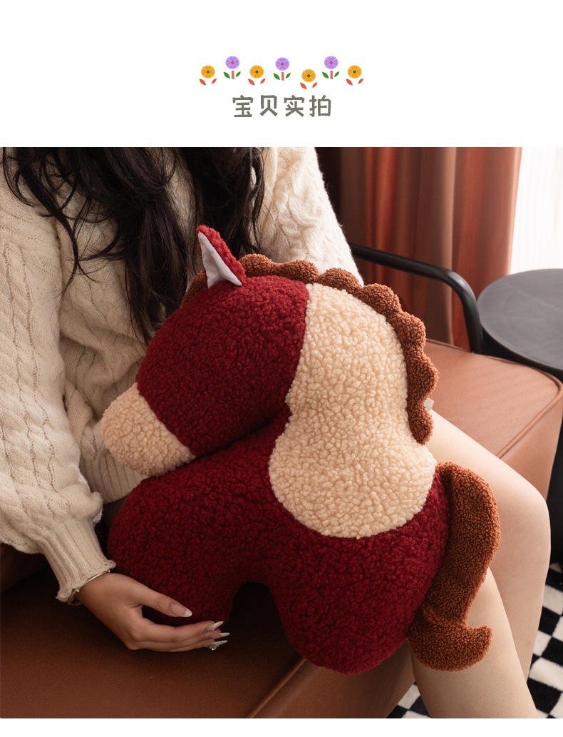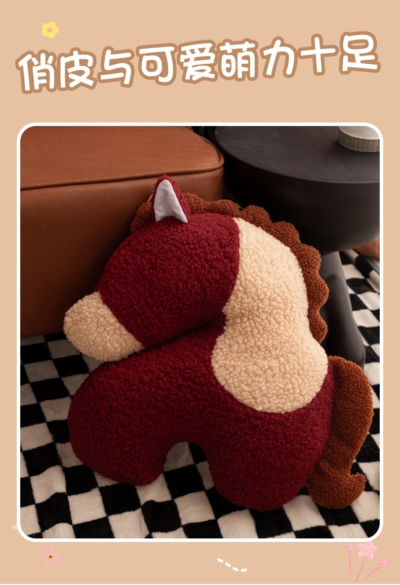 新款马年抱枕异形毛绒玩偶沙发客厅春节装饰摆件小宝马靠枕送礼物