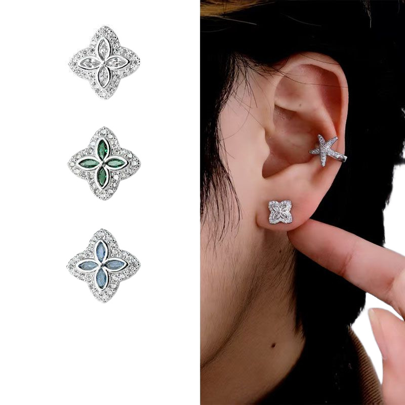 跨境2026转运四叶草男生耳钉套装潮酷耳饰欧美风节日礼物送男朋友