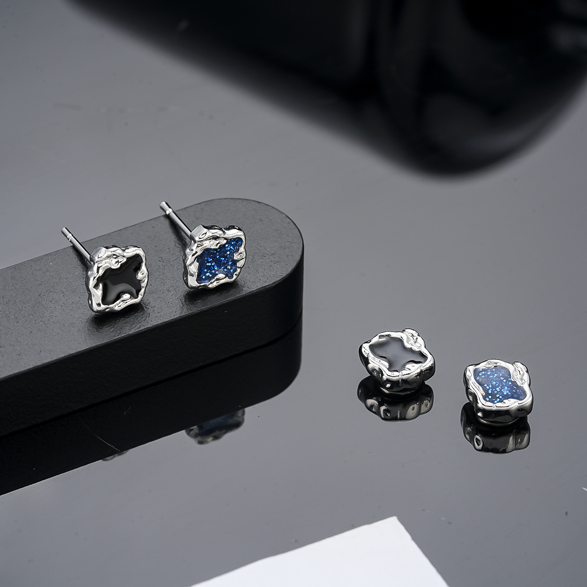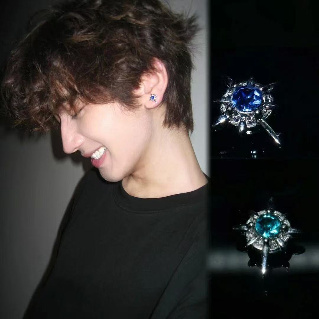 满钻晶簇石耳钉男独特设计感钛钢不掉色个性百搭配饰冷淡风饰品女