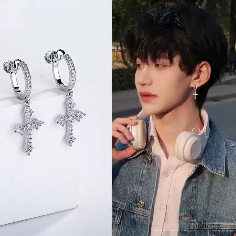 マイクロ散りばめられたジルコニウム菱形クロスピアスイヤークリップイヤリングメンズヨーロッパとアメリカのイヤリングレディースイヤリングトレンディな2025ホットスタイル