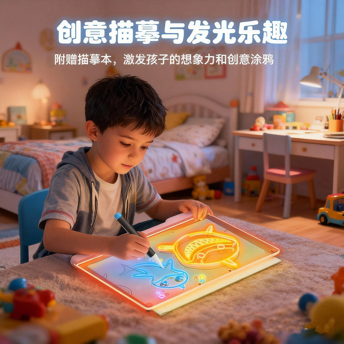 跨境充电儿童发光画板电池手绘板家用可擦写diy玩具会发光的画板