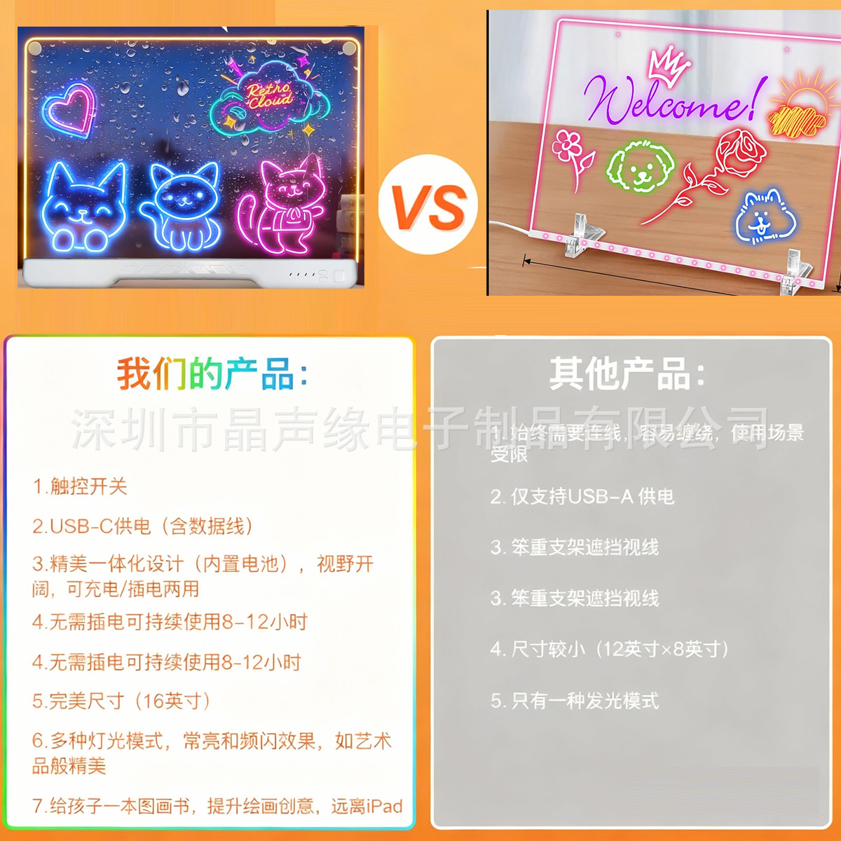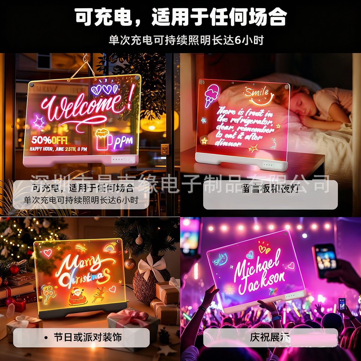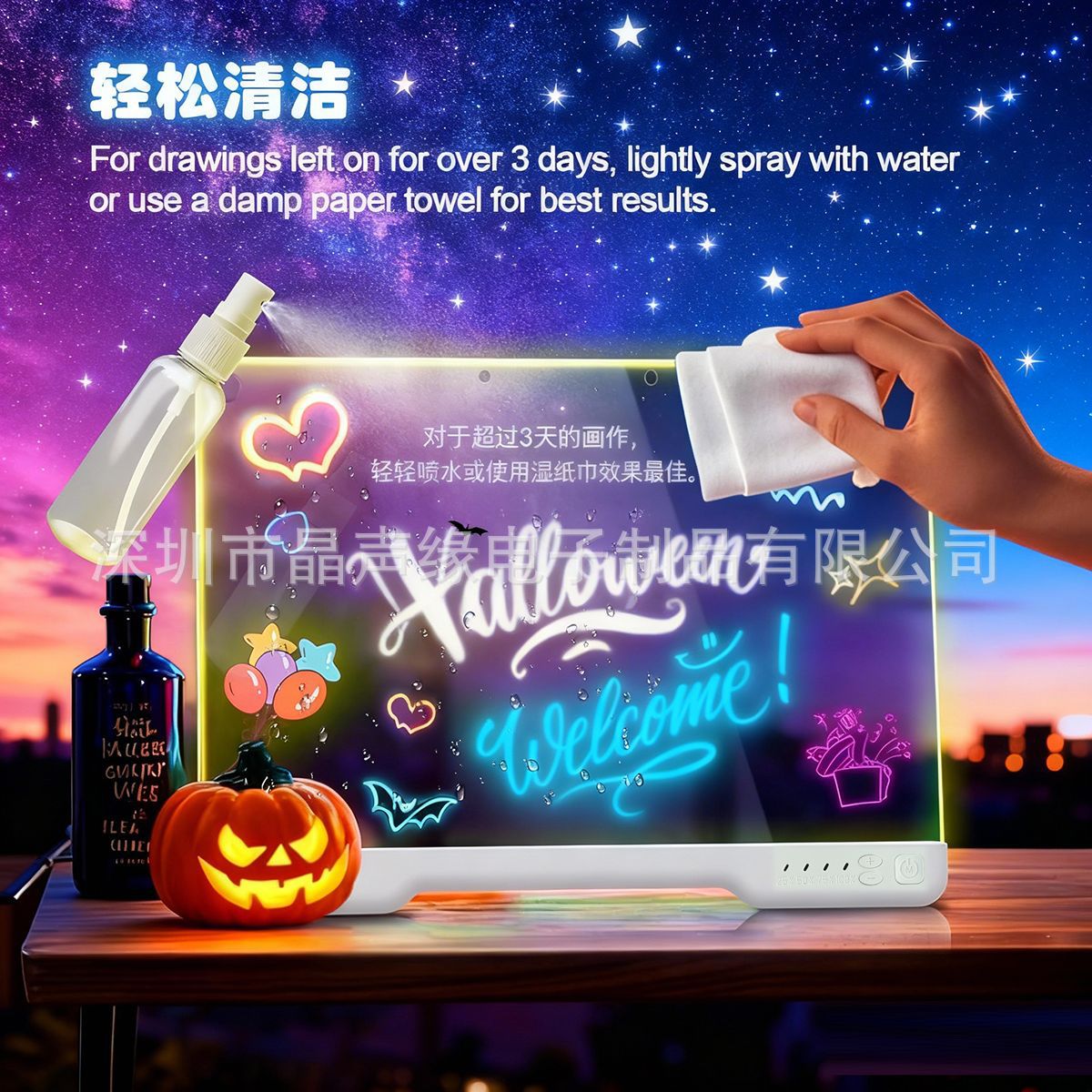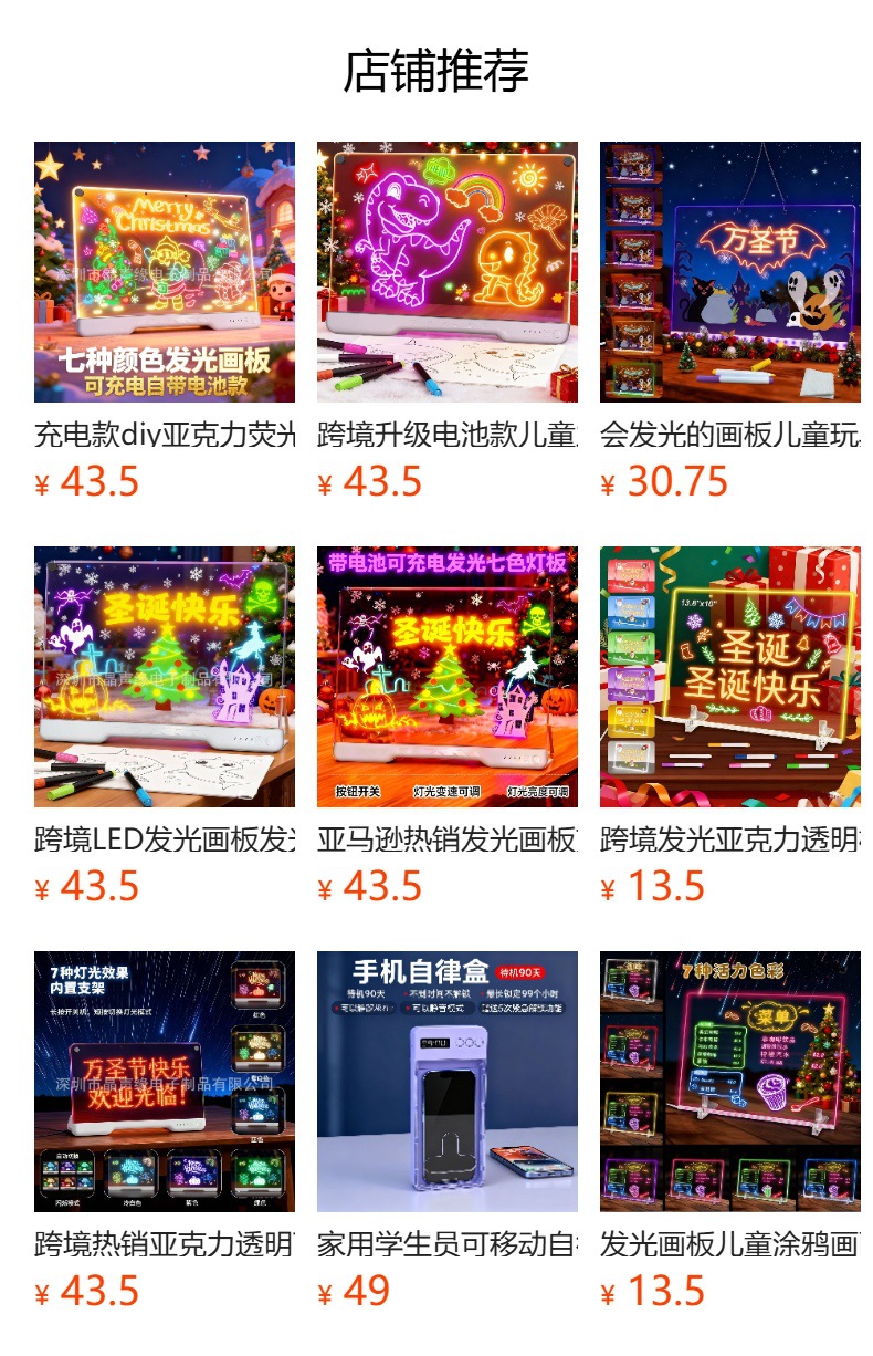 跨境LED发光画板发光亚克力生日可擦万圣节圣诞节礼物电池充电