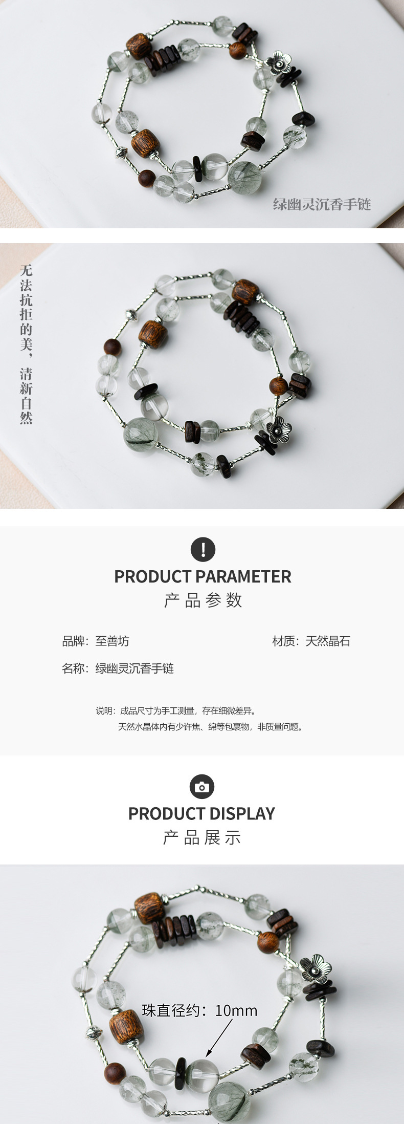 天然绿幽灵10mm圆珠单圈手链时尚简约配沉香算盘珠女饰品手串批发
