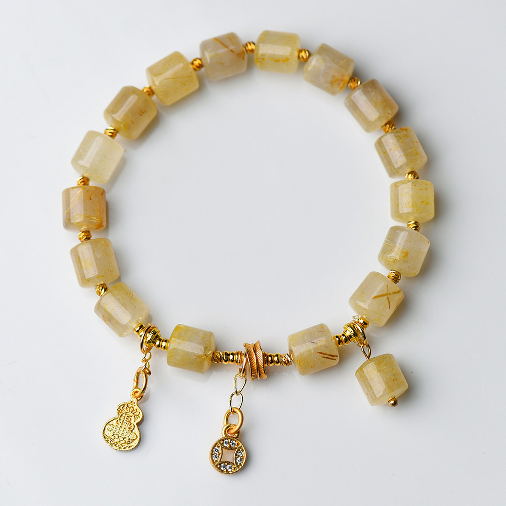 天然钛晶8mm桶珠单圈简约手链配合金葫芦饰品发晶女手串饰品批发