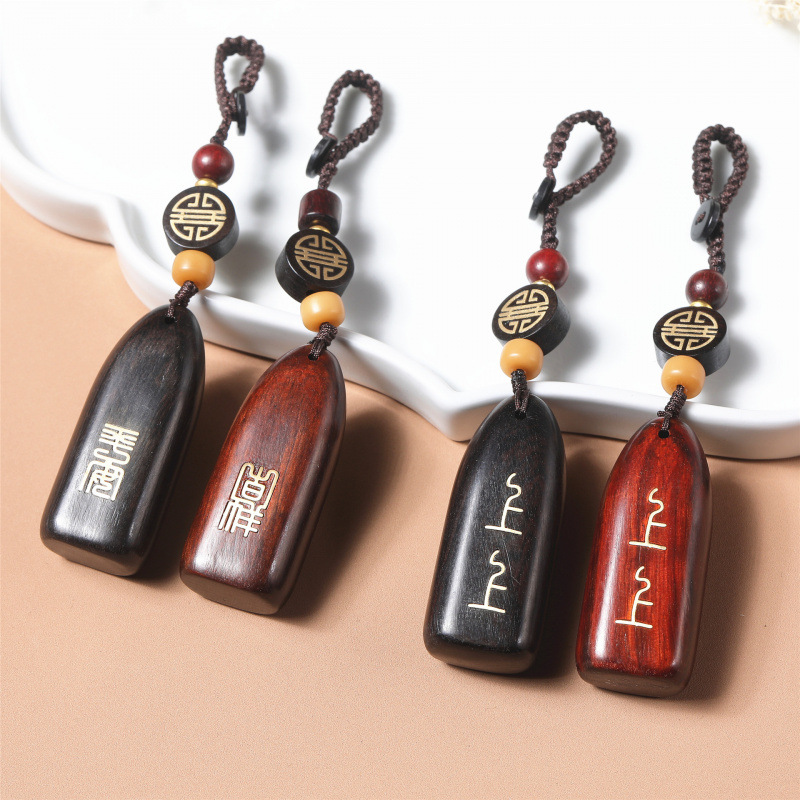 紫檀木雕刻字上签配饰钥匙扣汽车挂件黑檀镶嵌木质无事牌饰品