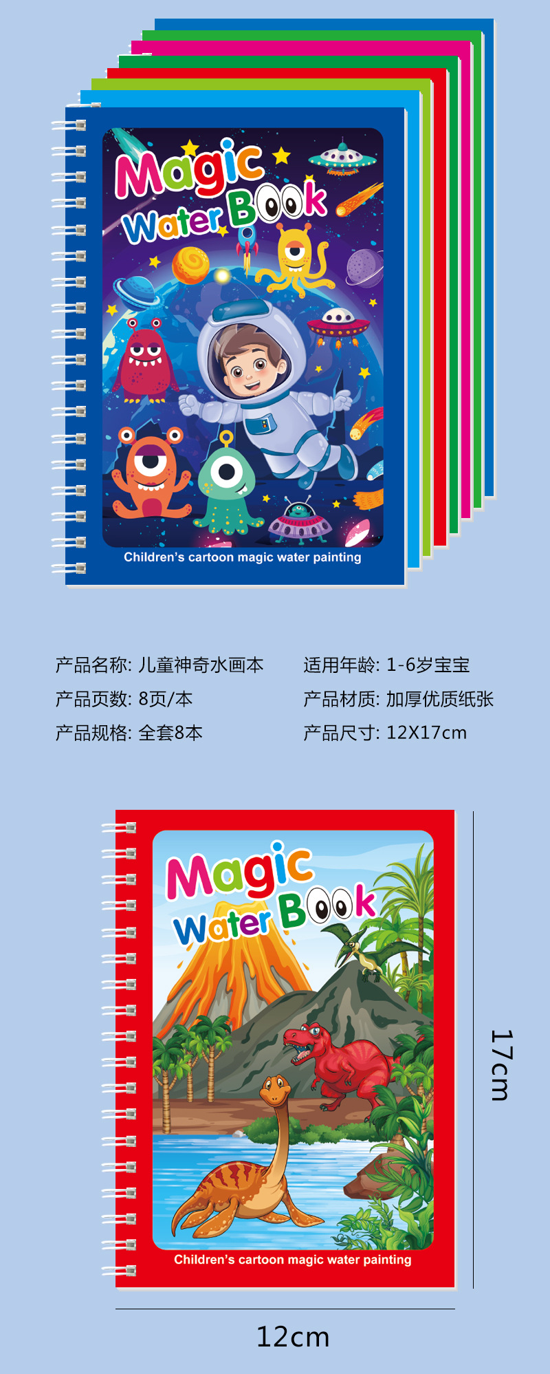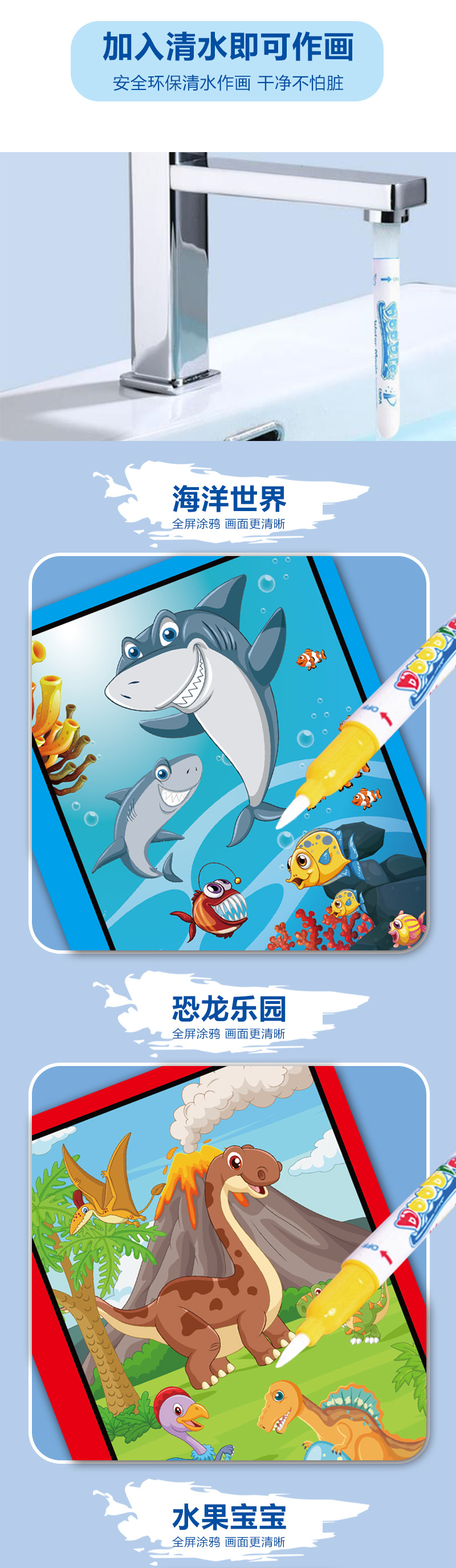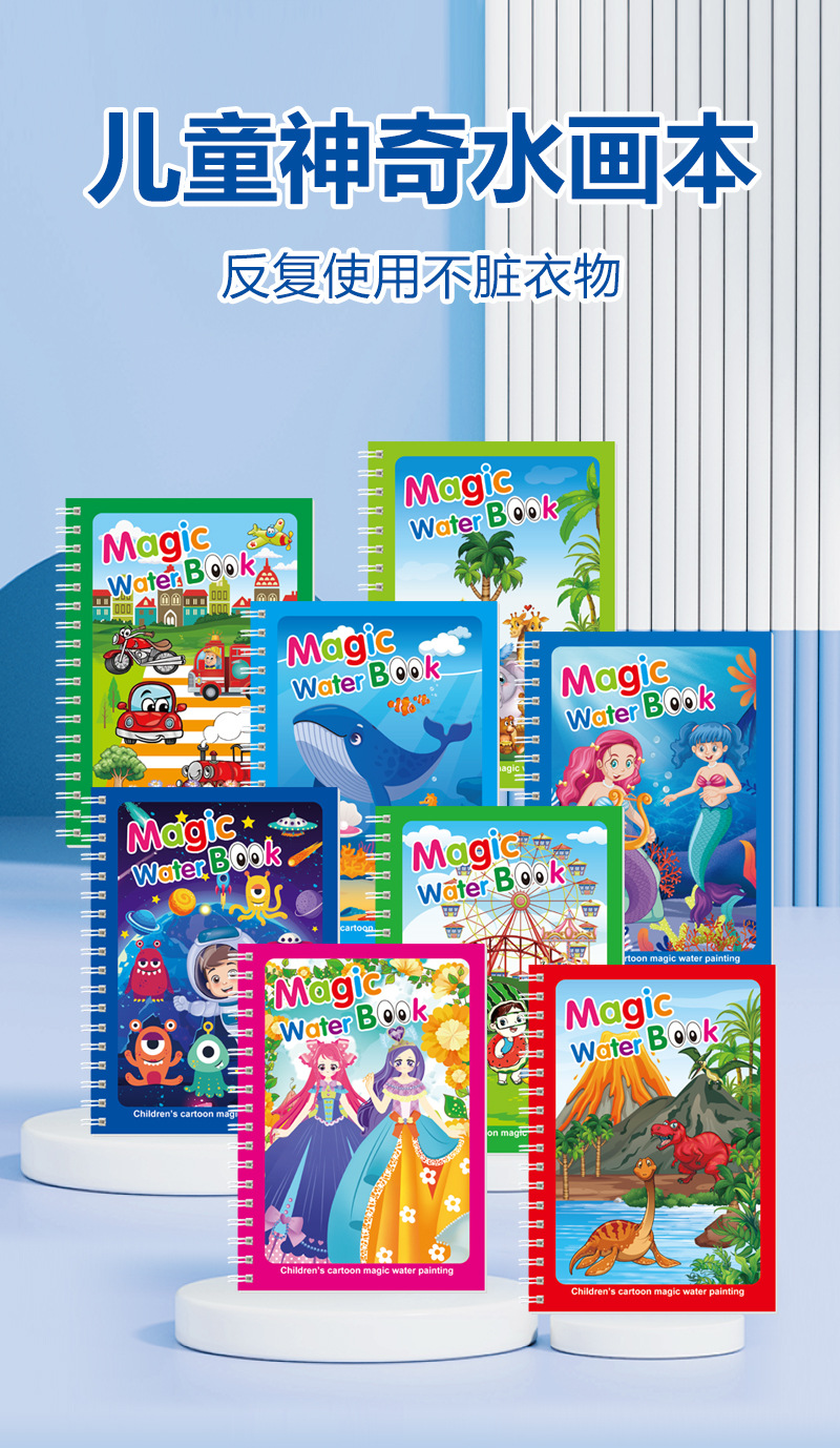 跨境神奇水画本反复涂鸦水绘画涂色宝宝益智男女孩幼儿园可贴标签