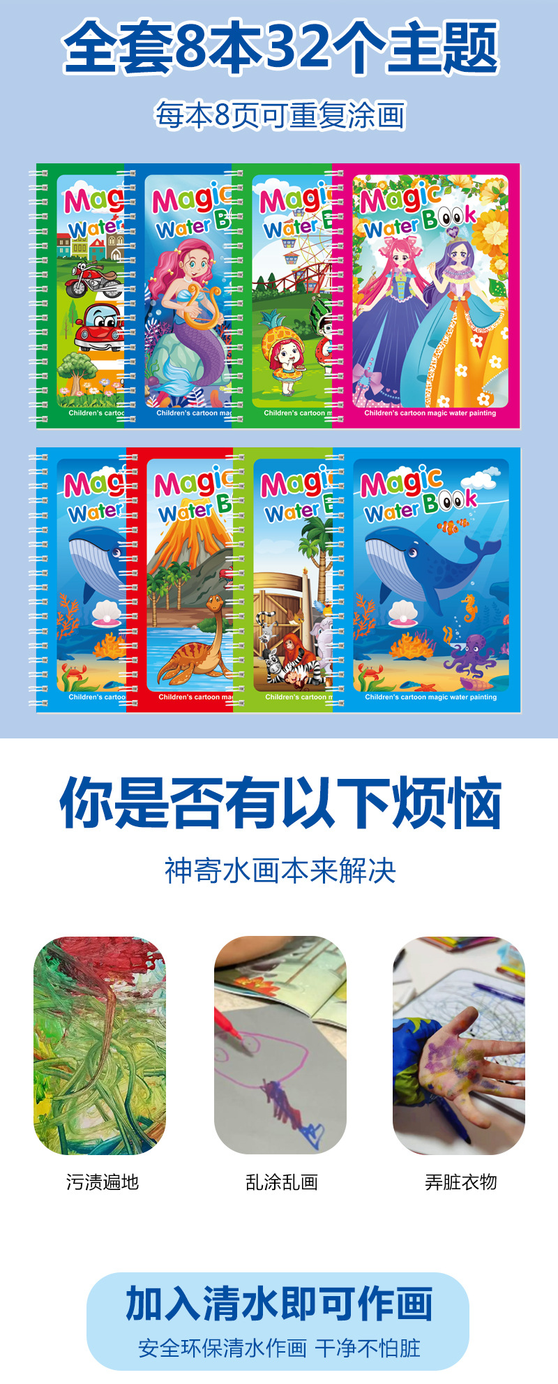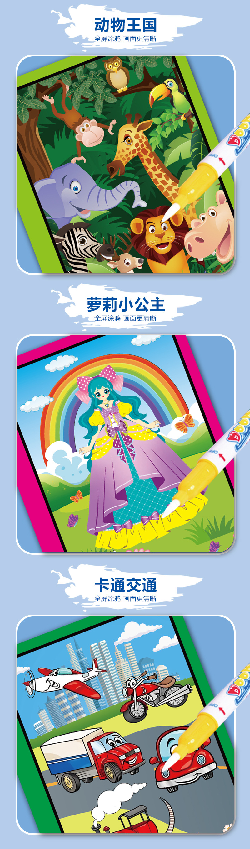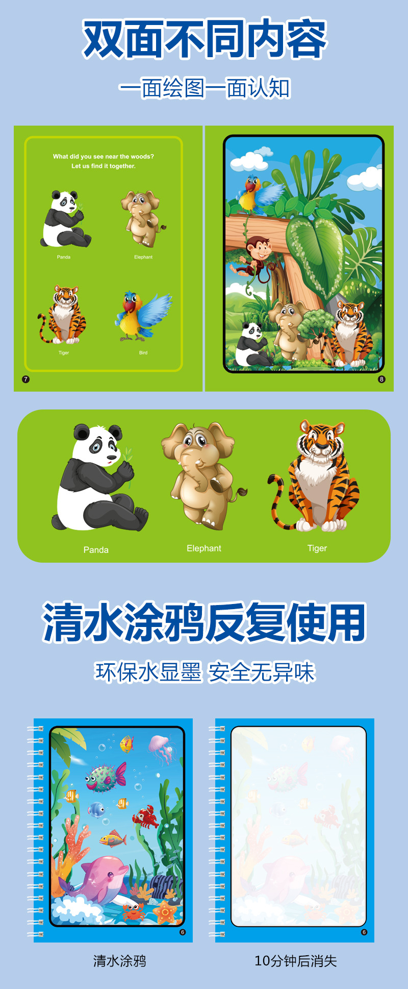 跨境神奇水画本反复涂鸦水绘画涂色宝宝益智男女孩幼儿园可贴标签