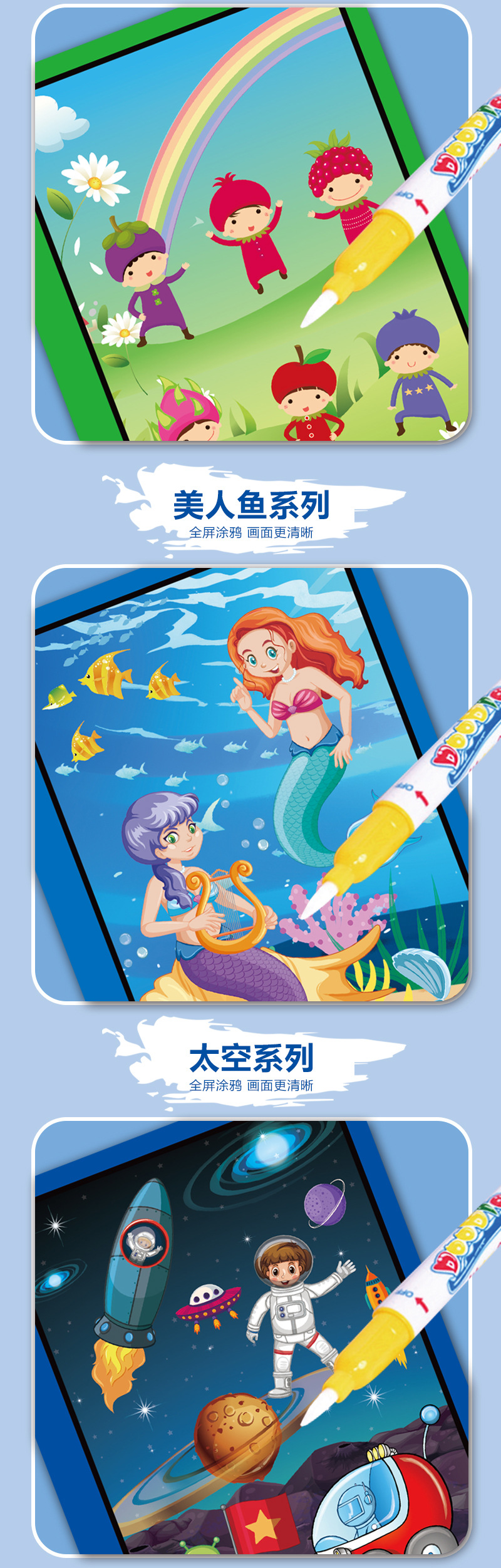 颜色 美人鱼,水果宝宝,萝莉小公主,交通工具,恐龙乐园,动物王国,海洋世界,太空