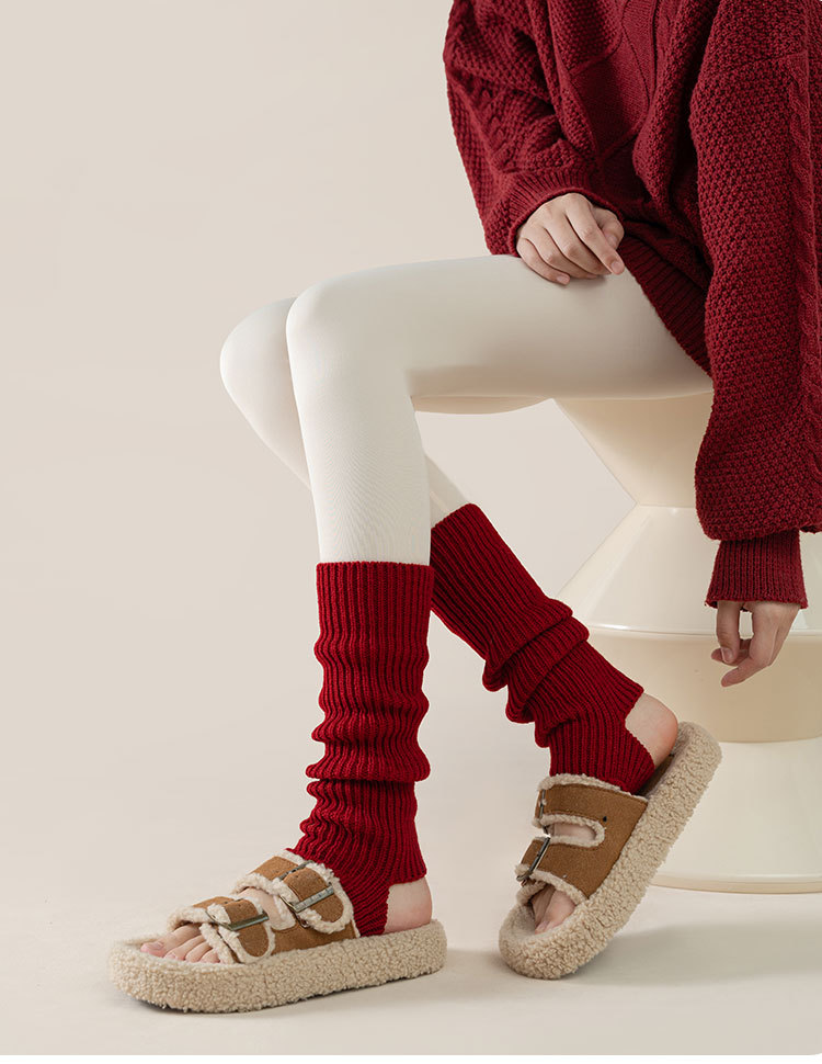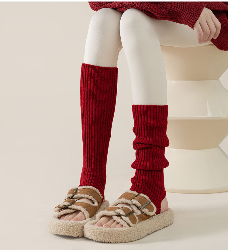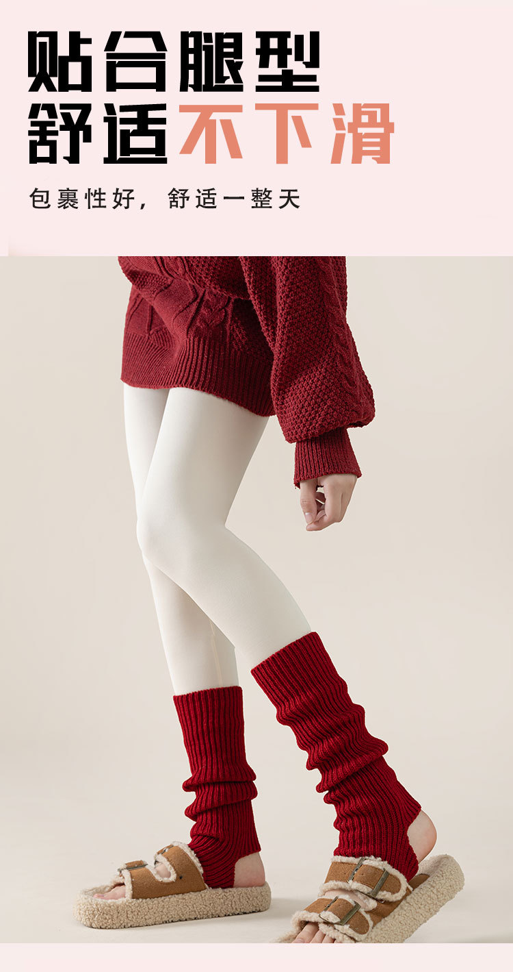 新年红色瑜伽袜套百搭基础款护腿套秋冬针织辣妹脚套