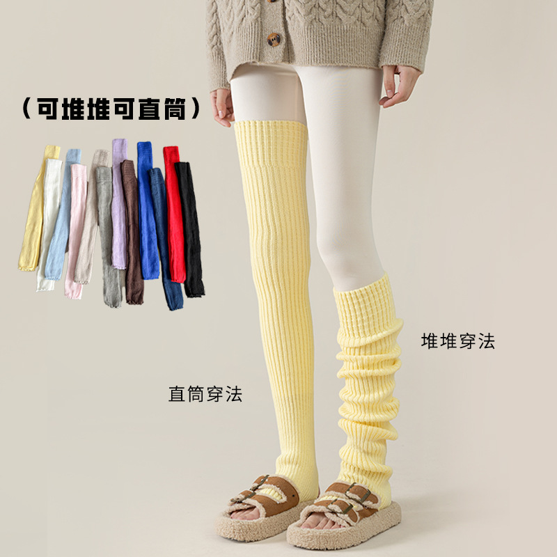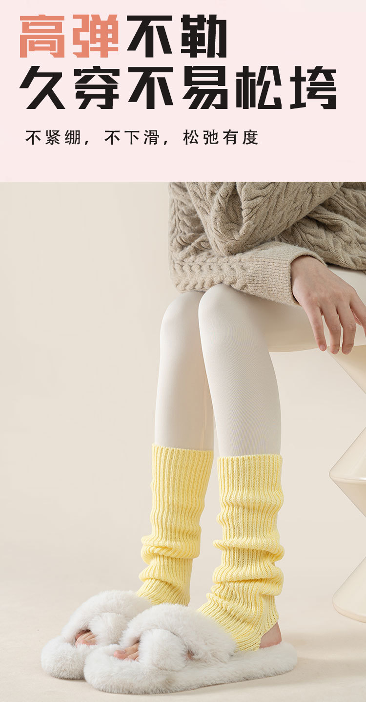 秋冬堆堆袜套黄色纯色针织保暖舞蹈瑜伽普拉提腿套批发