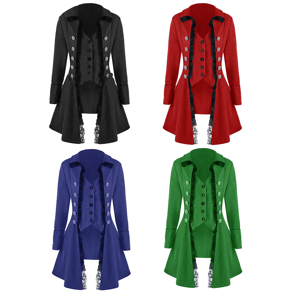 QZ ゴシック ビクトリア朝 海賊風 レディース フェイクツーピース レーストリムジャケット 中世風 ハロウィンコスチューム ファンタジー