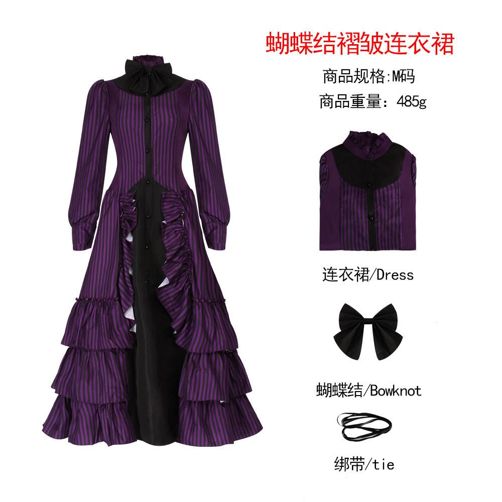 中世ゴシックストライプ蝶結びしわワンピースハロウィン舞台パフォーマンスcos服宮廷レトロ