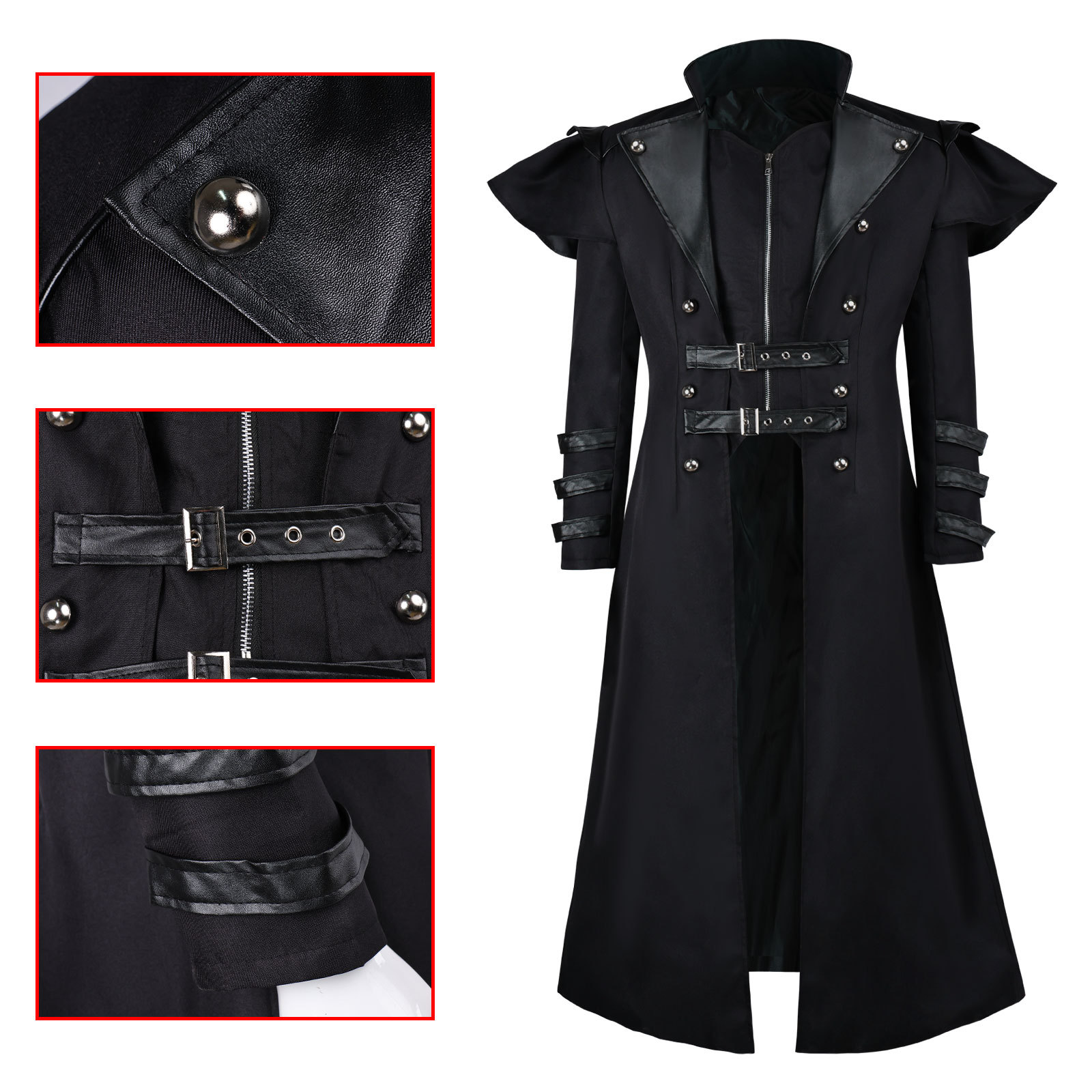 ハロウィーン中世cos立襟マントコート金ベルベット金辺ボタンマント風コスプレ演技服